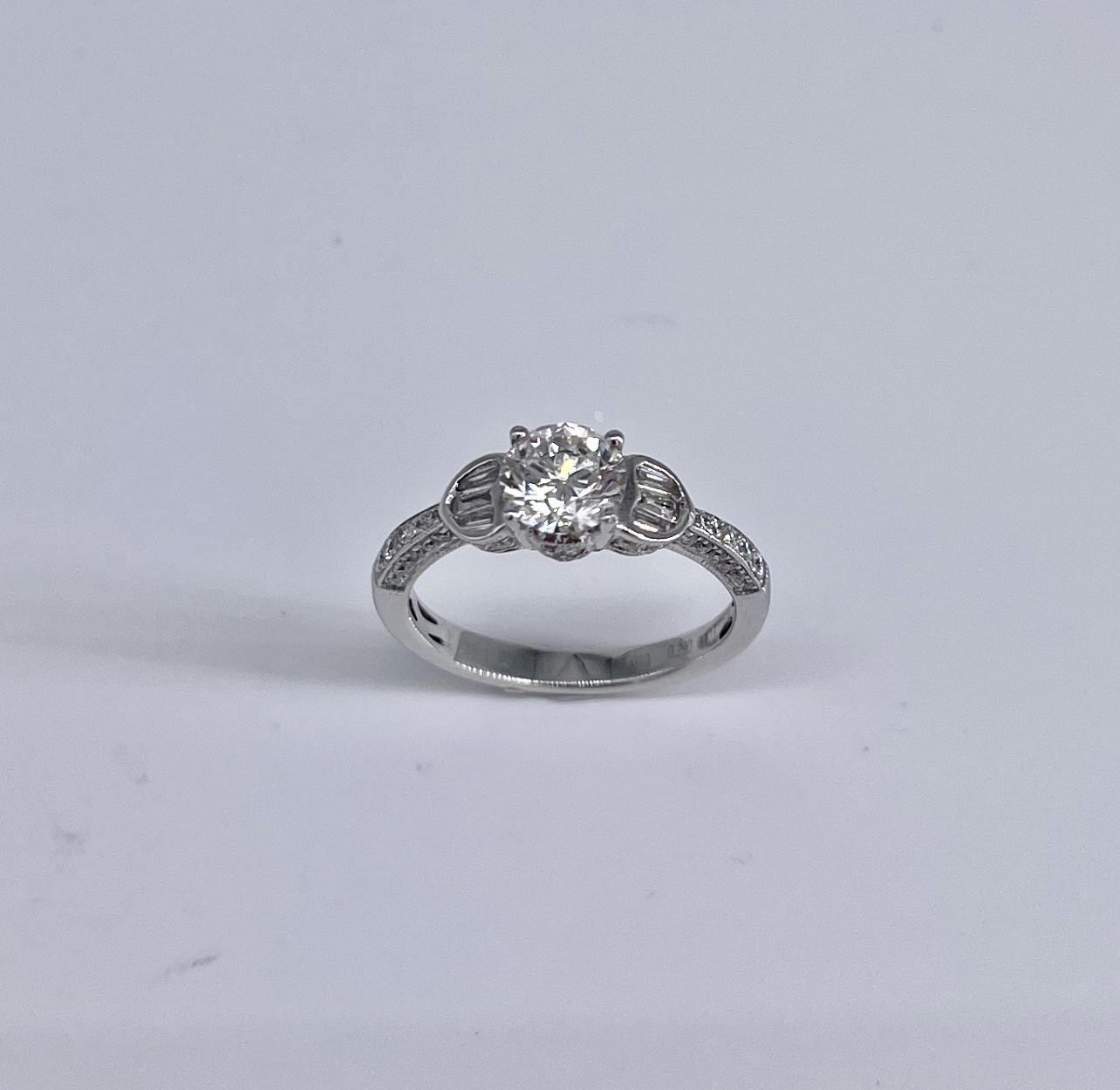 新款750白色黃金鑲單鑽石襯石戒指壹隻(包鑲連托)