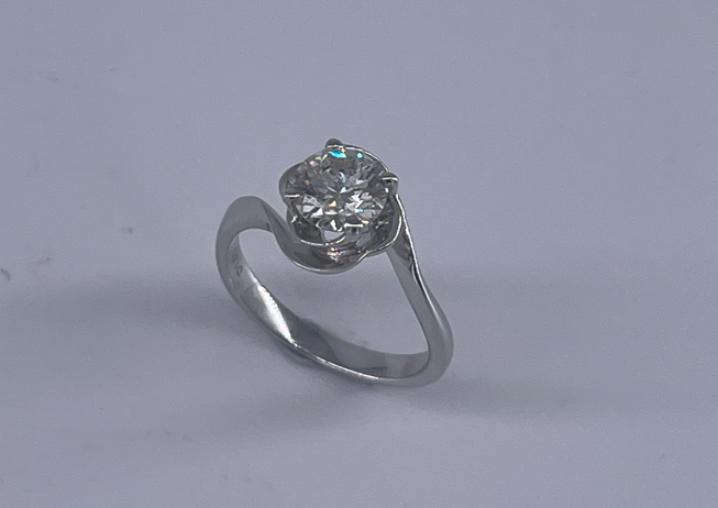 新款750白色黃金鑲單鑽石戒指壹隻(包鑲連托)