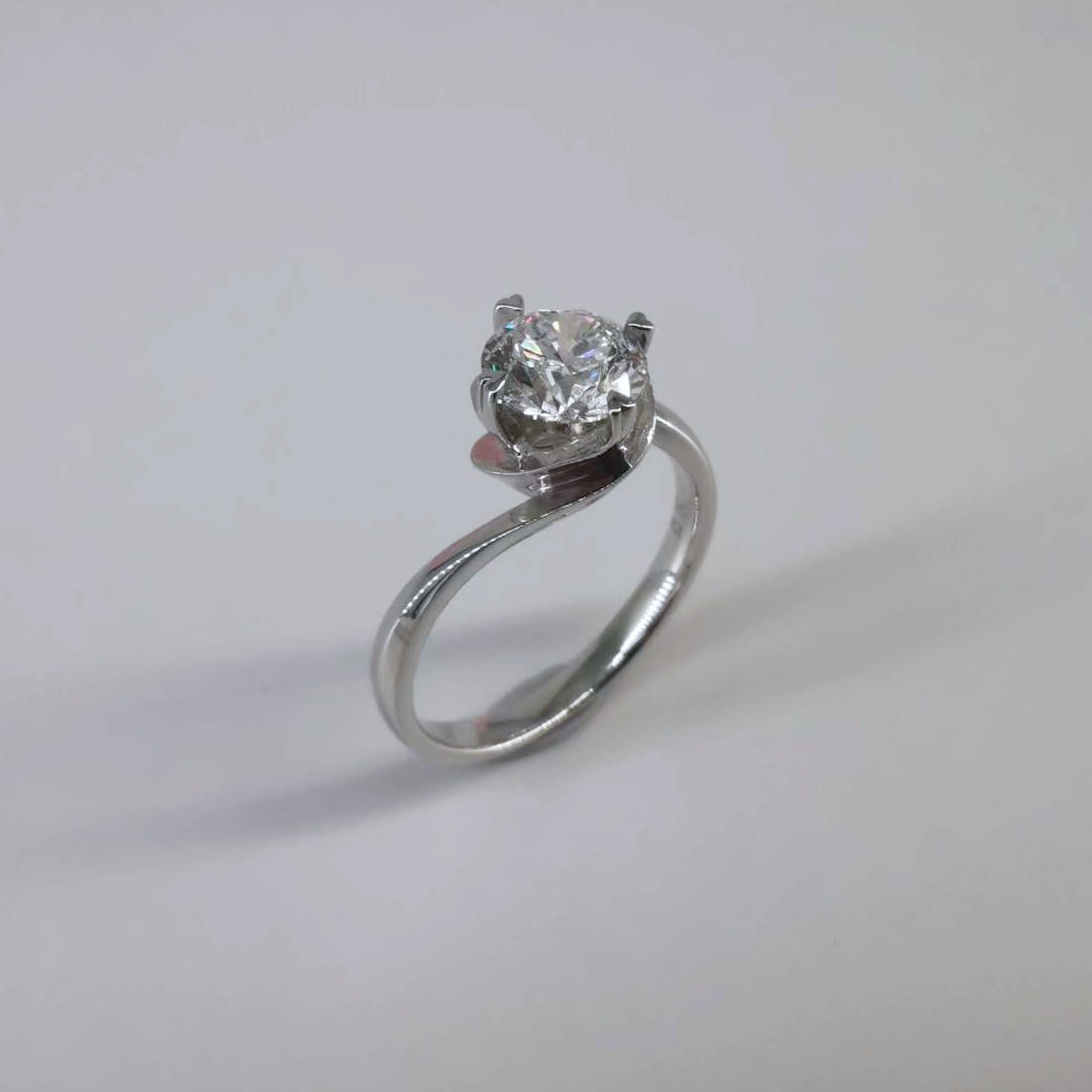 新款750白色黃金鑲單鑽石四爪戒指壹隻(包鑲連托)