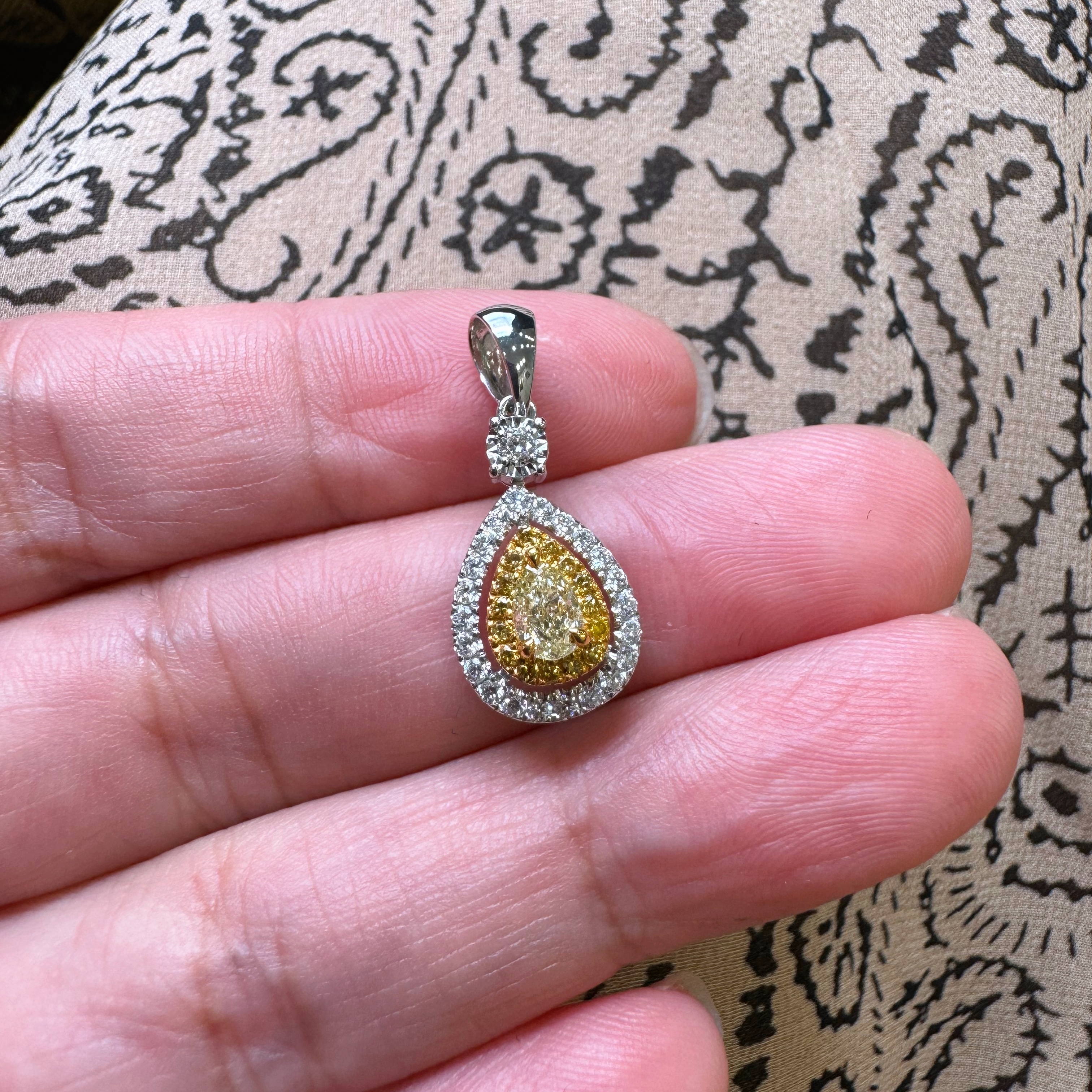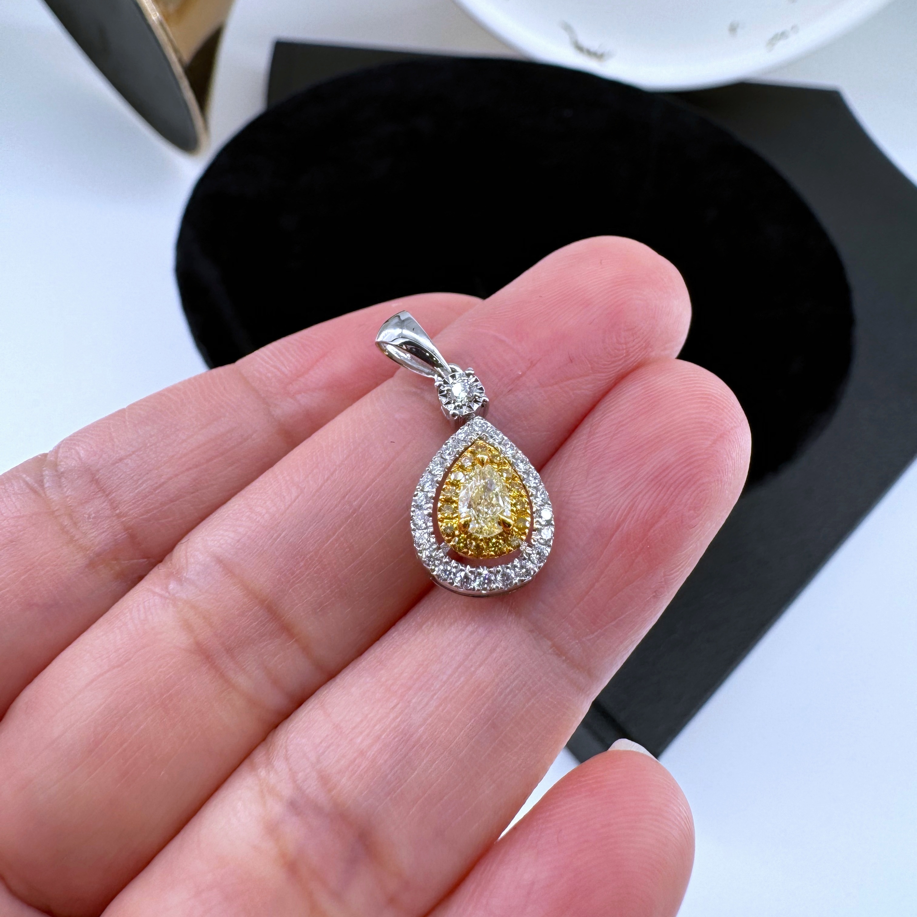 新款750白色黃金鑲天然黃色鑽石襯石吊墜壹個(包鑲連托)