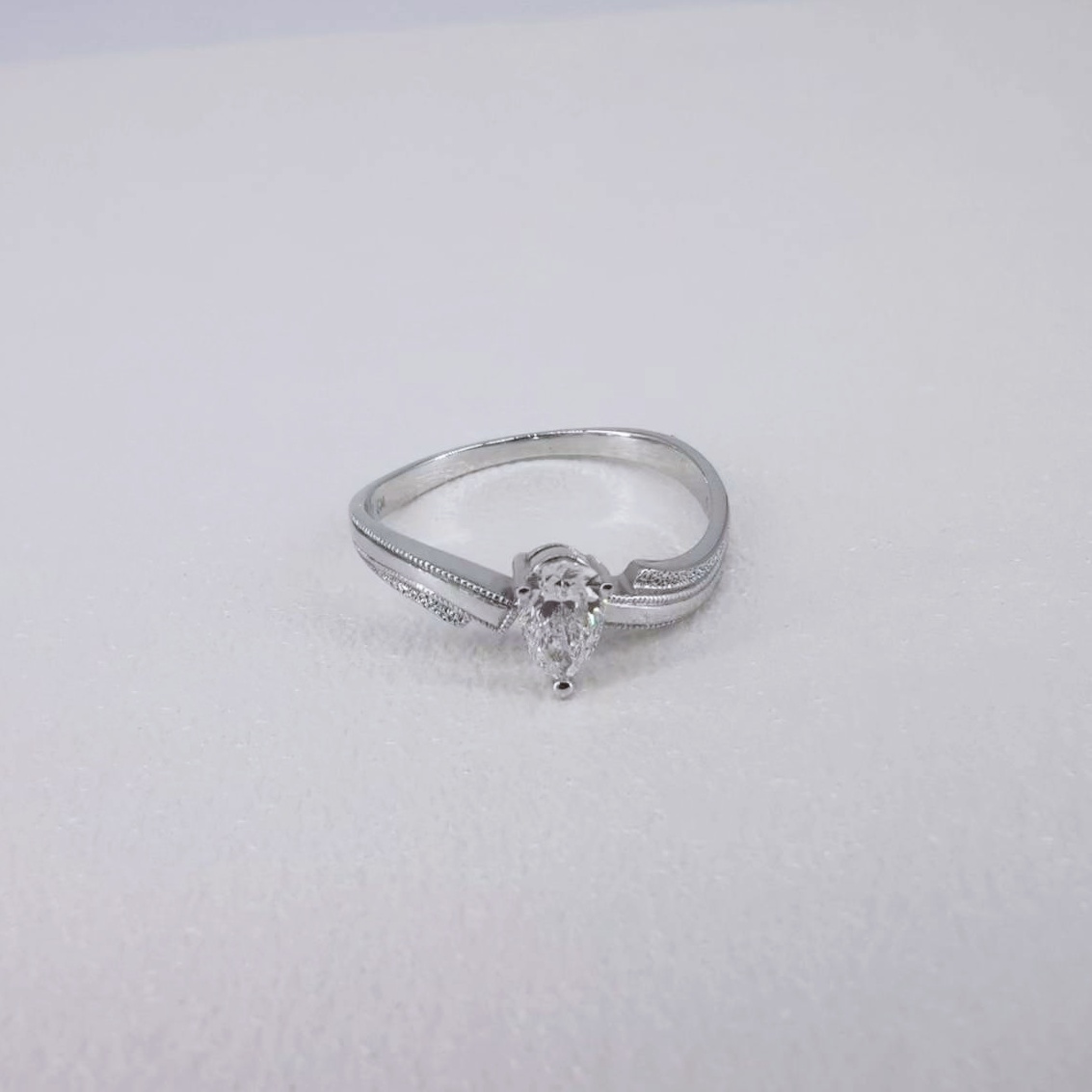 新款750白色黃金鑲梨形鑽石戒指壹隻(包鑲連托)