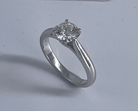 新款750白色黃金鑲單鑽石四爪戒指壹隻(包鑲連托)