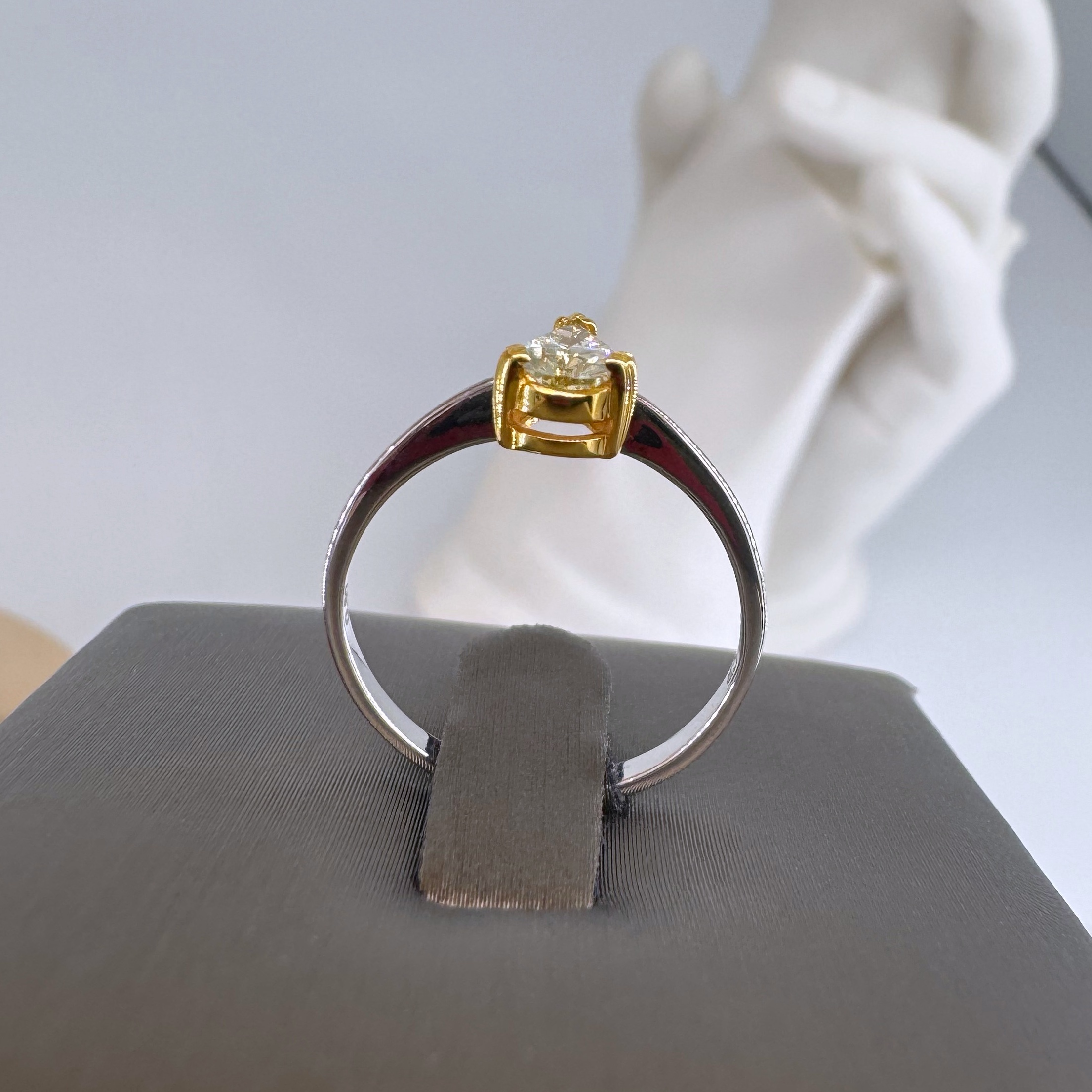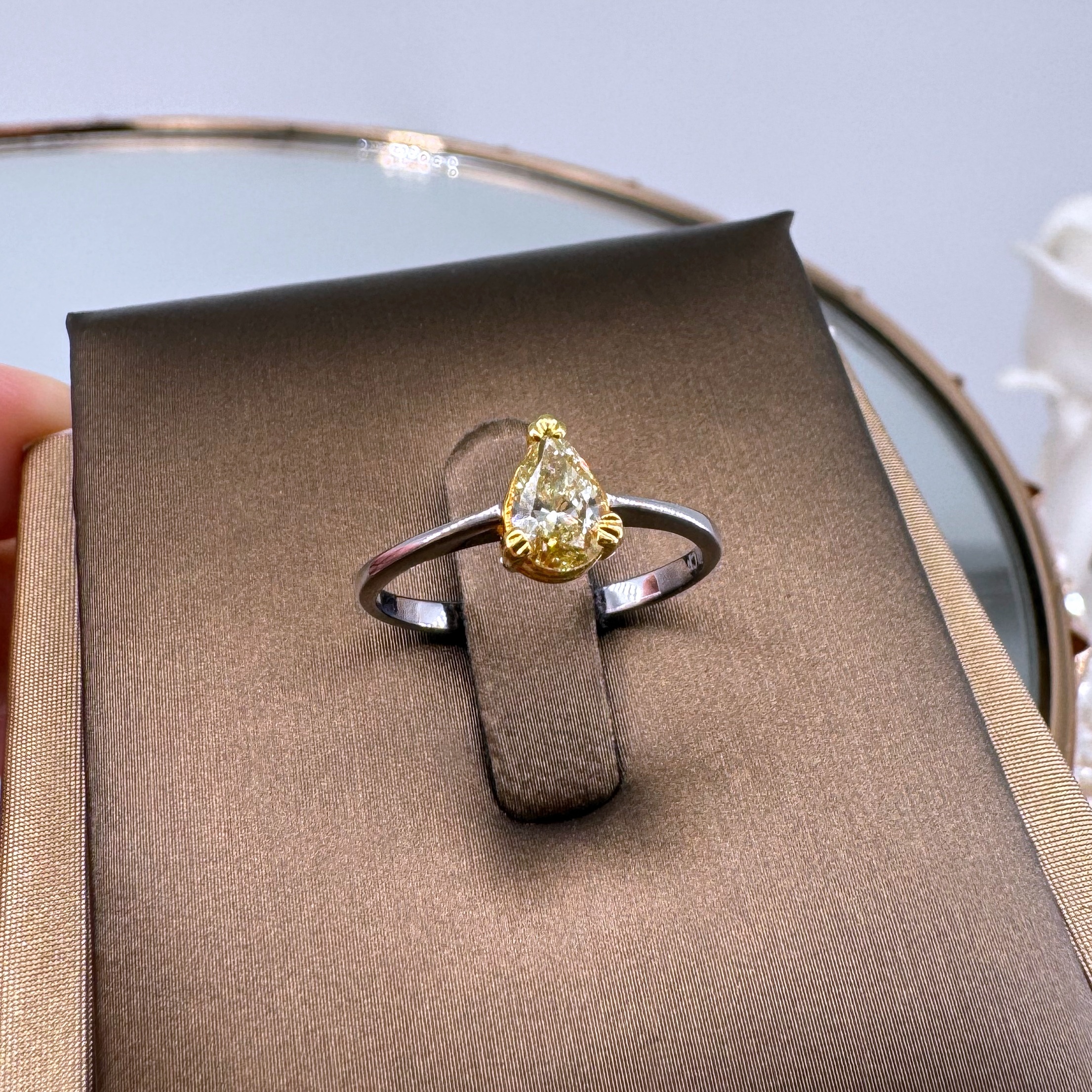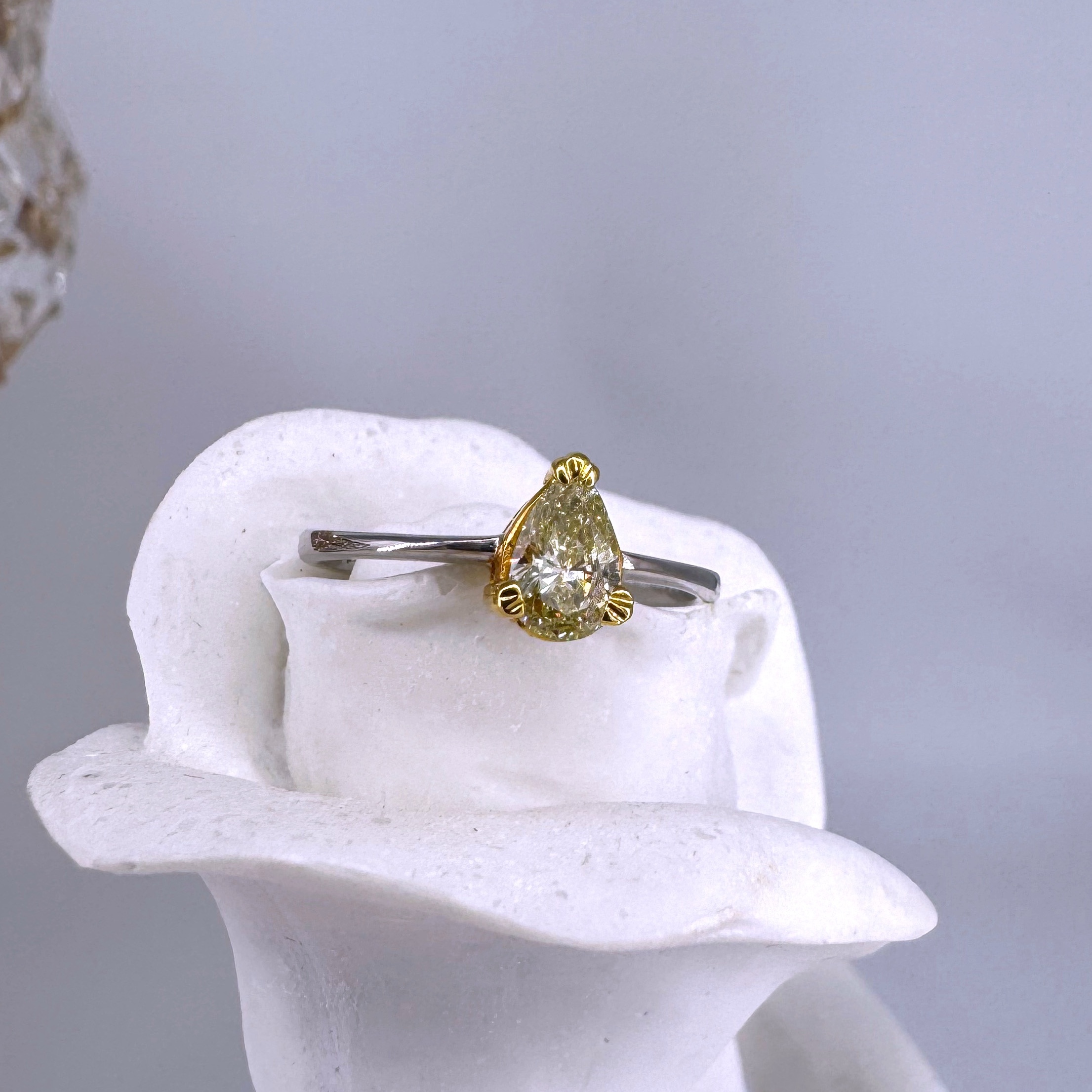 新款750白色黃金鑲黃色梨形鑽石戒指壹隻(包鑲連托)
