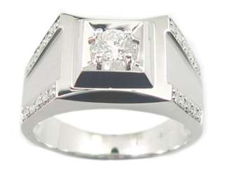 新款750白色黃金鑲單鑽石襯石男裝戒指(包鑲連托)