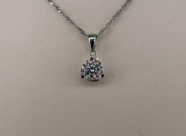 新款750白色黃金鑲單鑽石三爪吊墜壹個(包鑲連托)