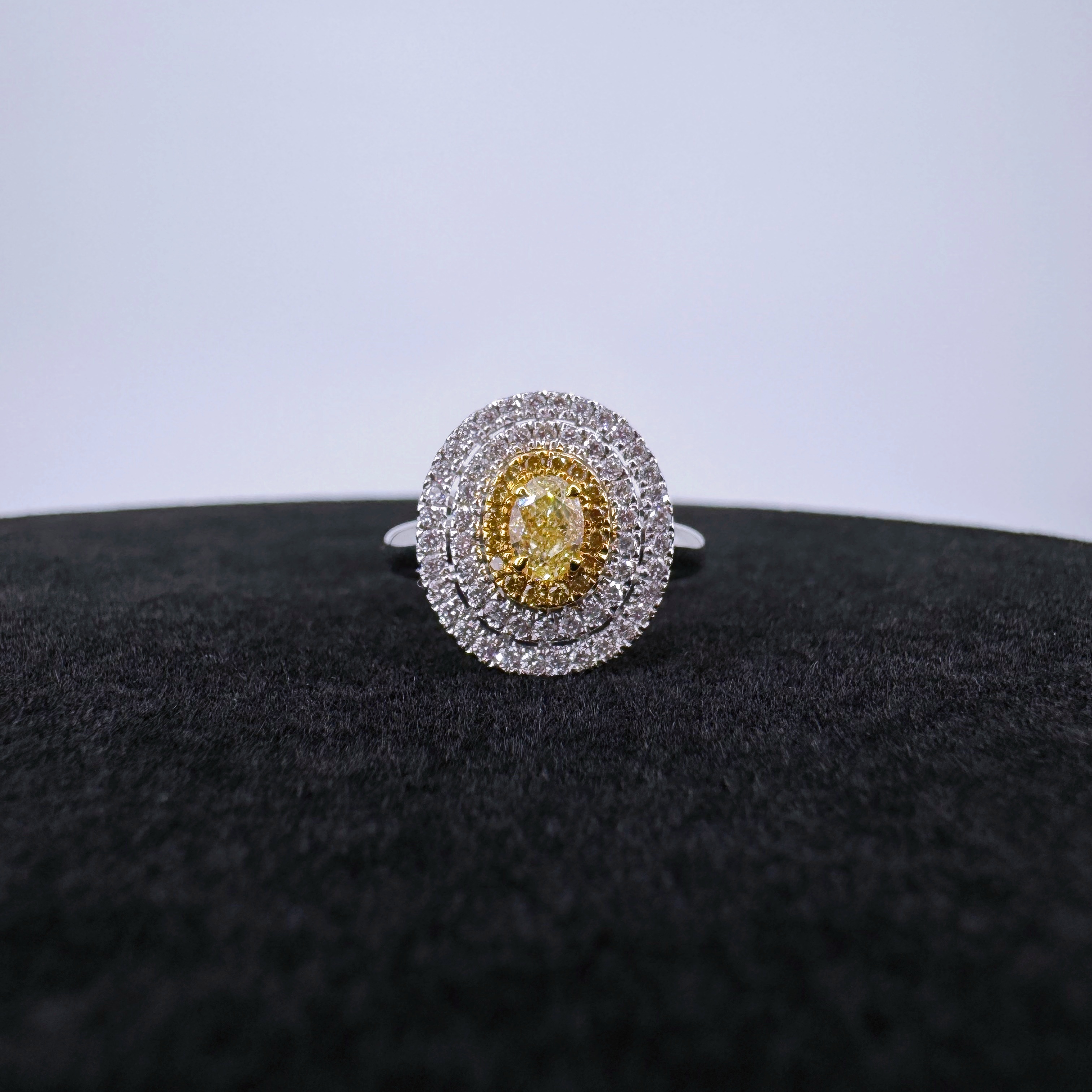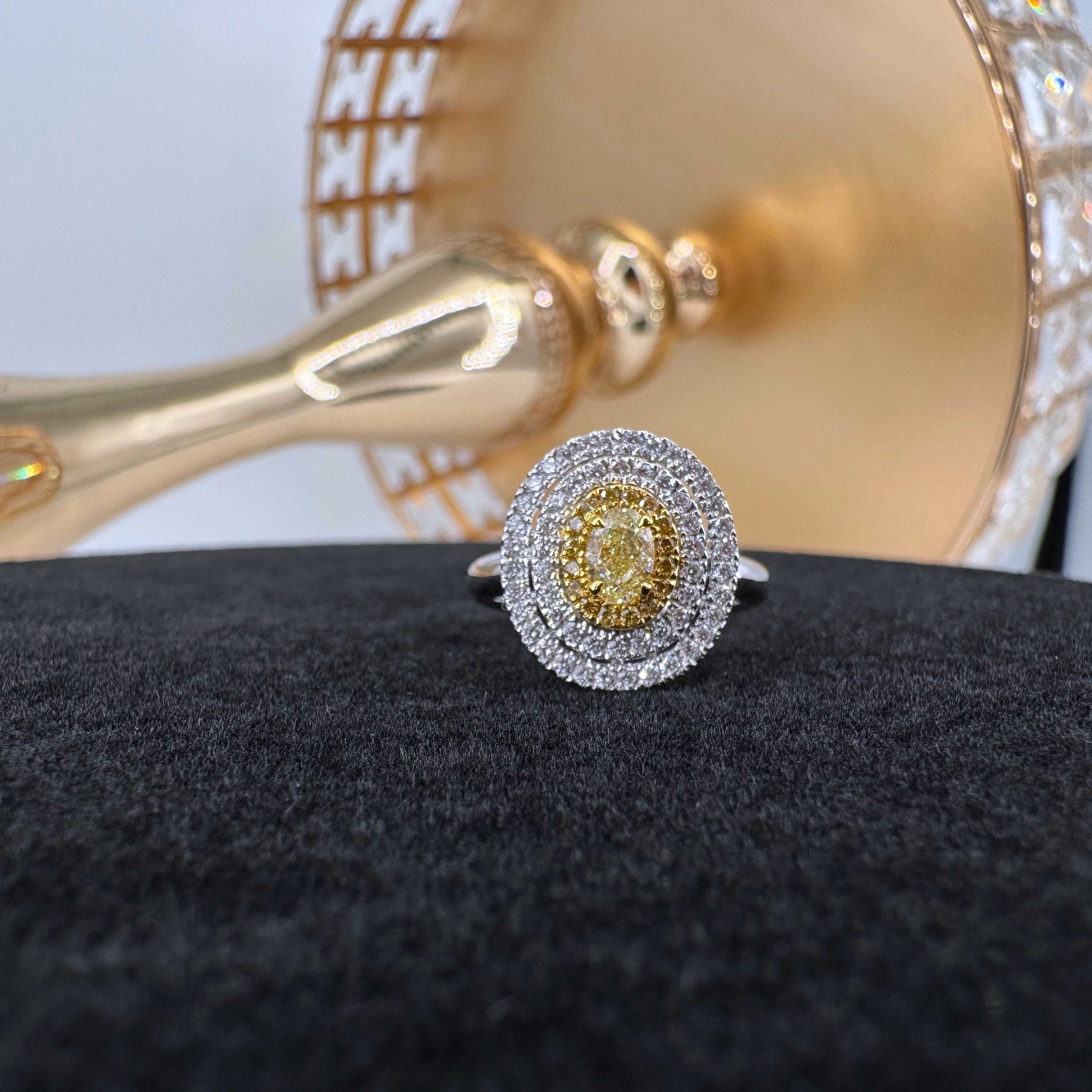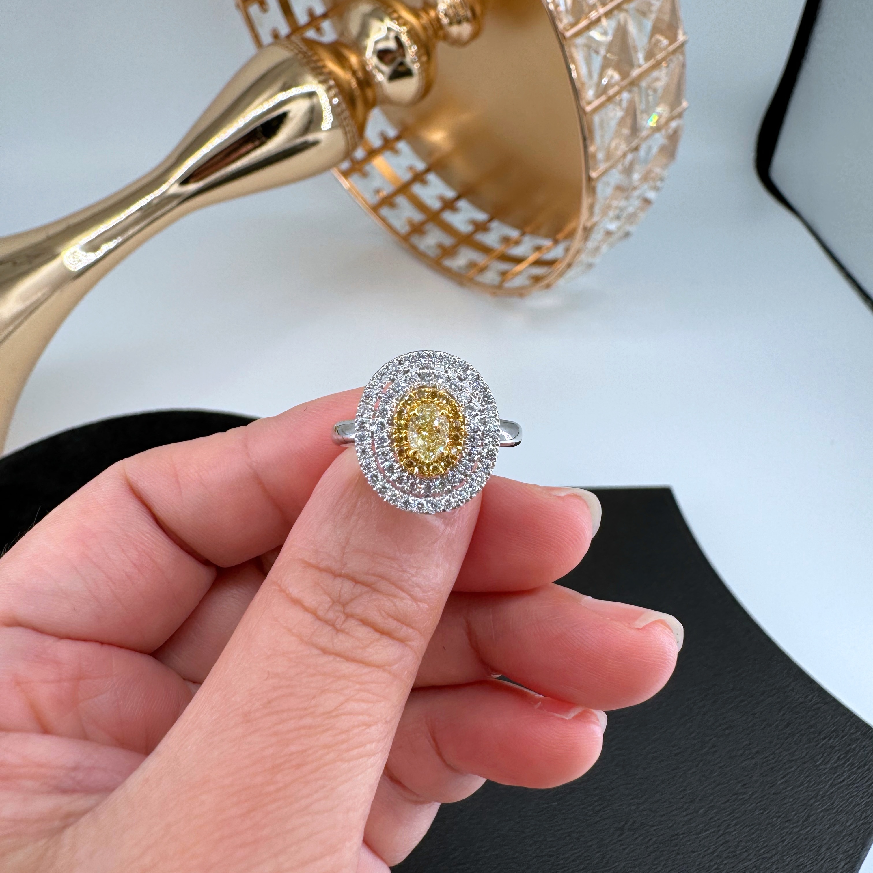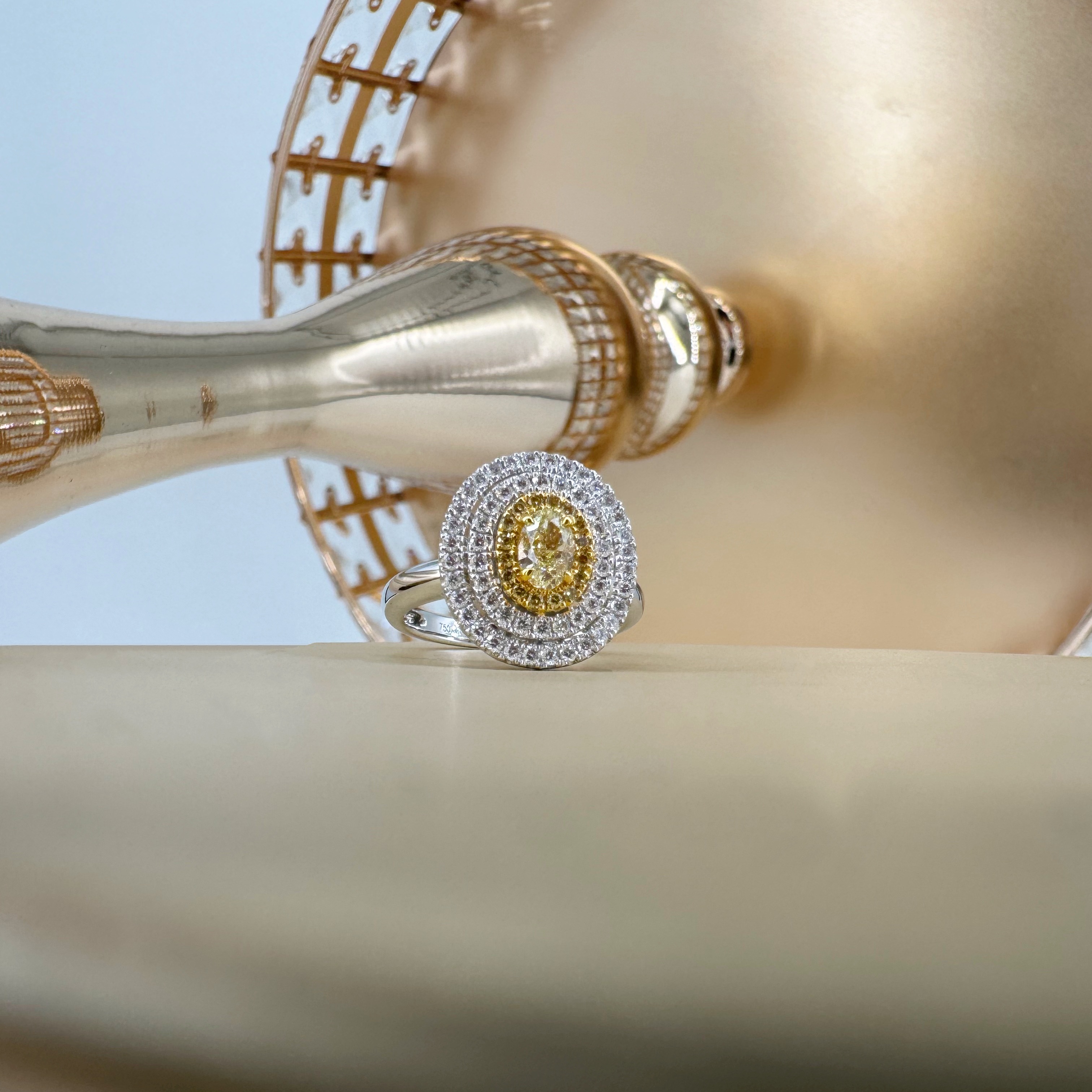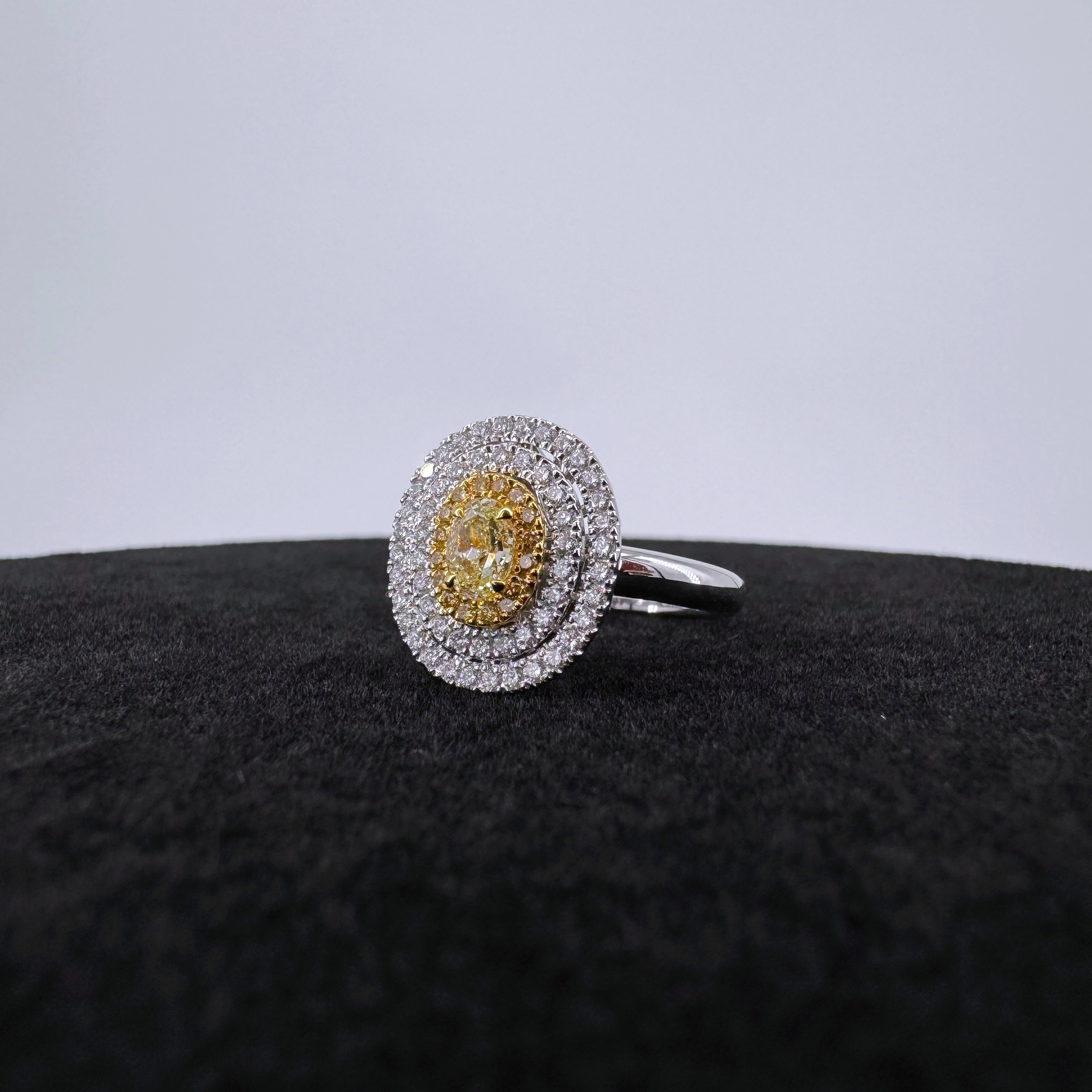 新款750白色黃金鑲天然黃色鑽石襯石戒指壹隻(包鑲連托)(一式兩戴)