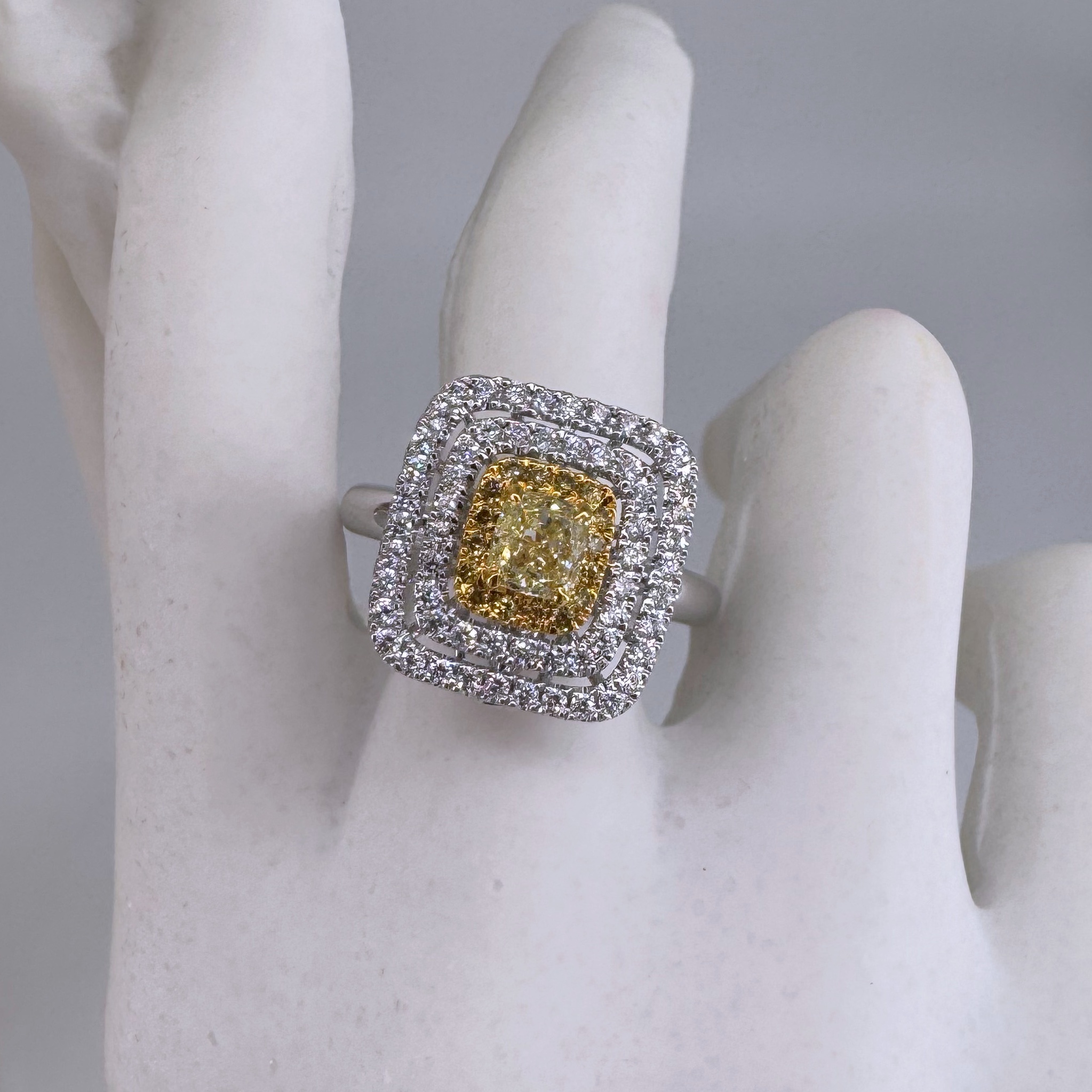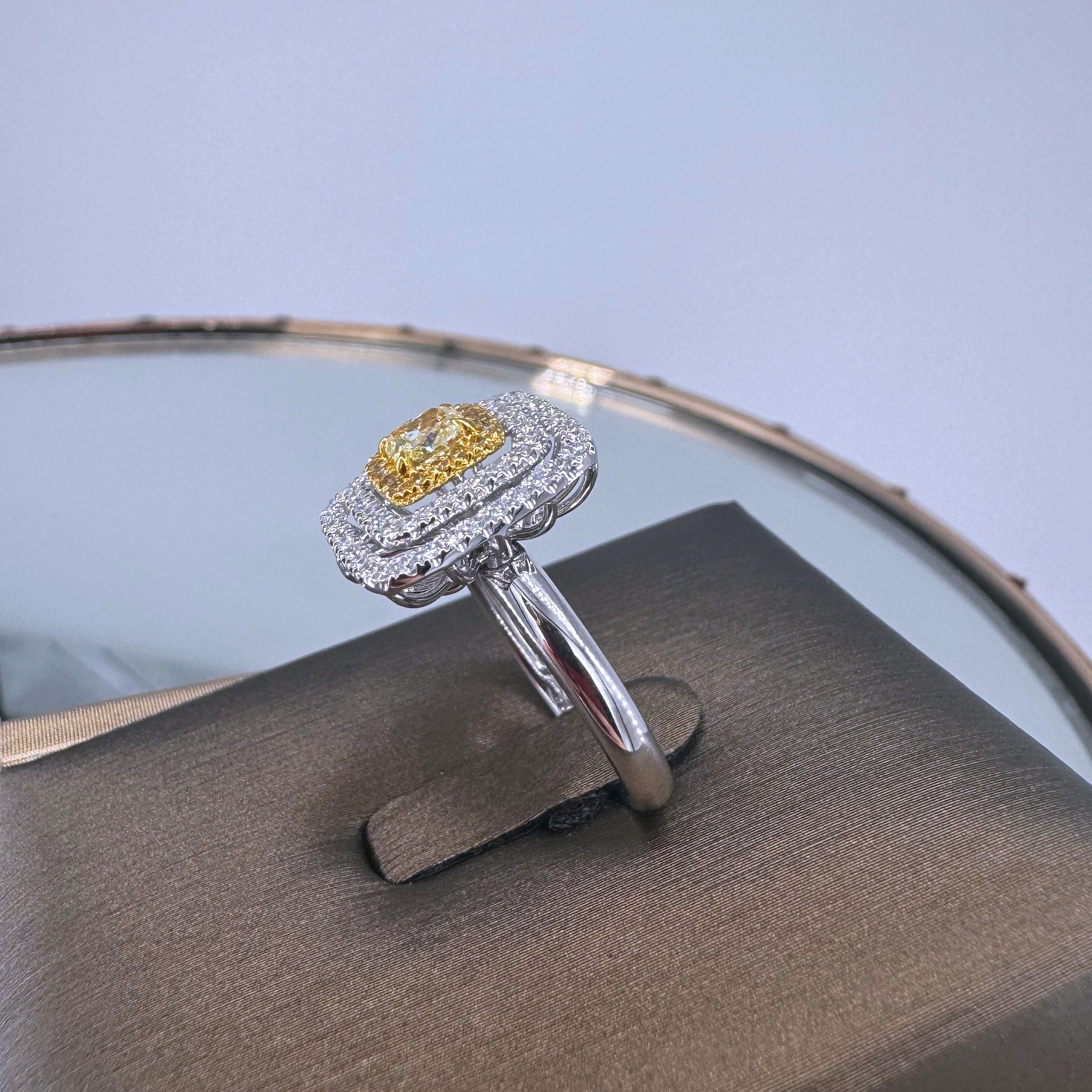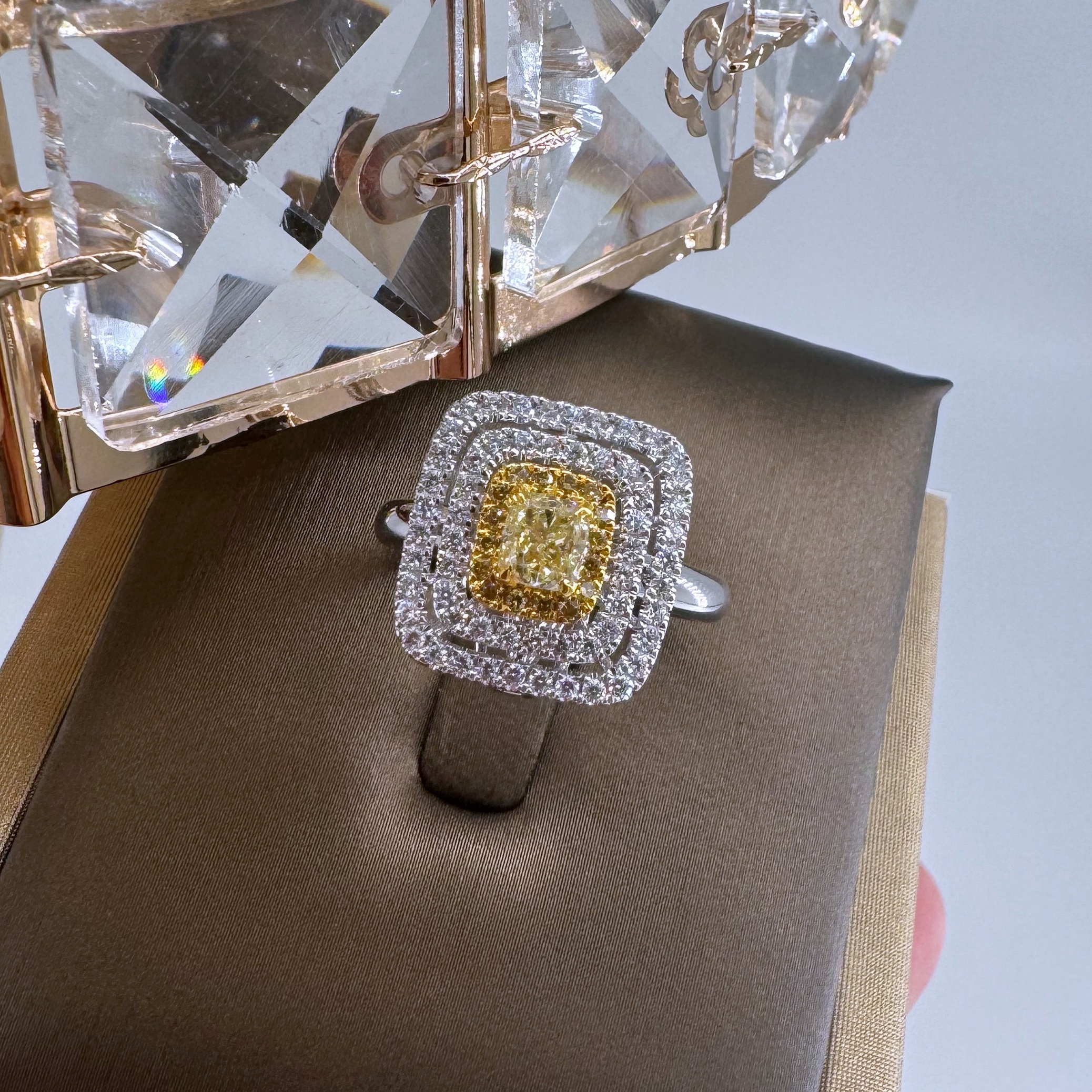 新款750白色黃金鑲天然黃色鑽石襯石戒指壹隻(包鑲連托)(一式兩戴)