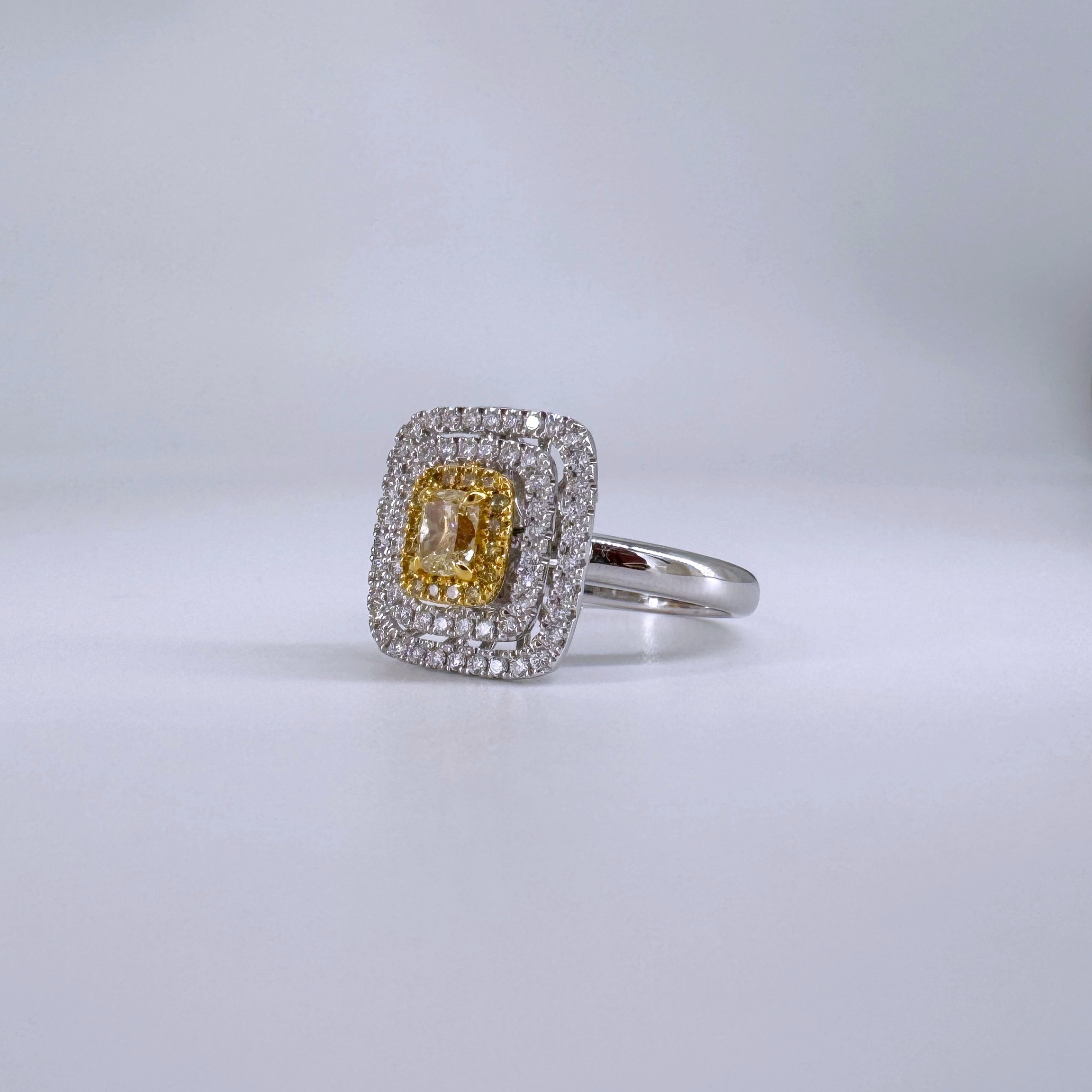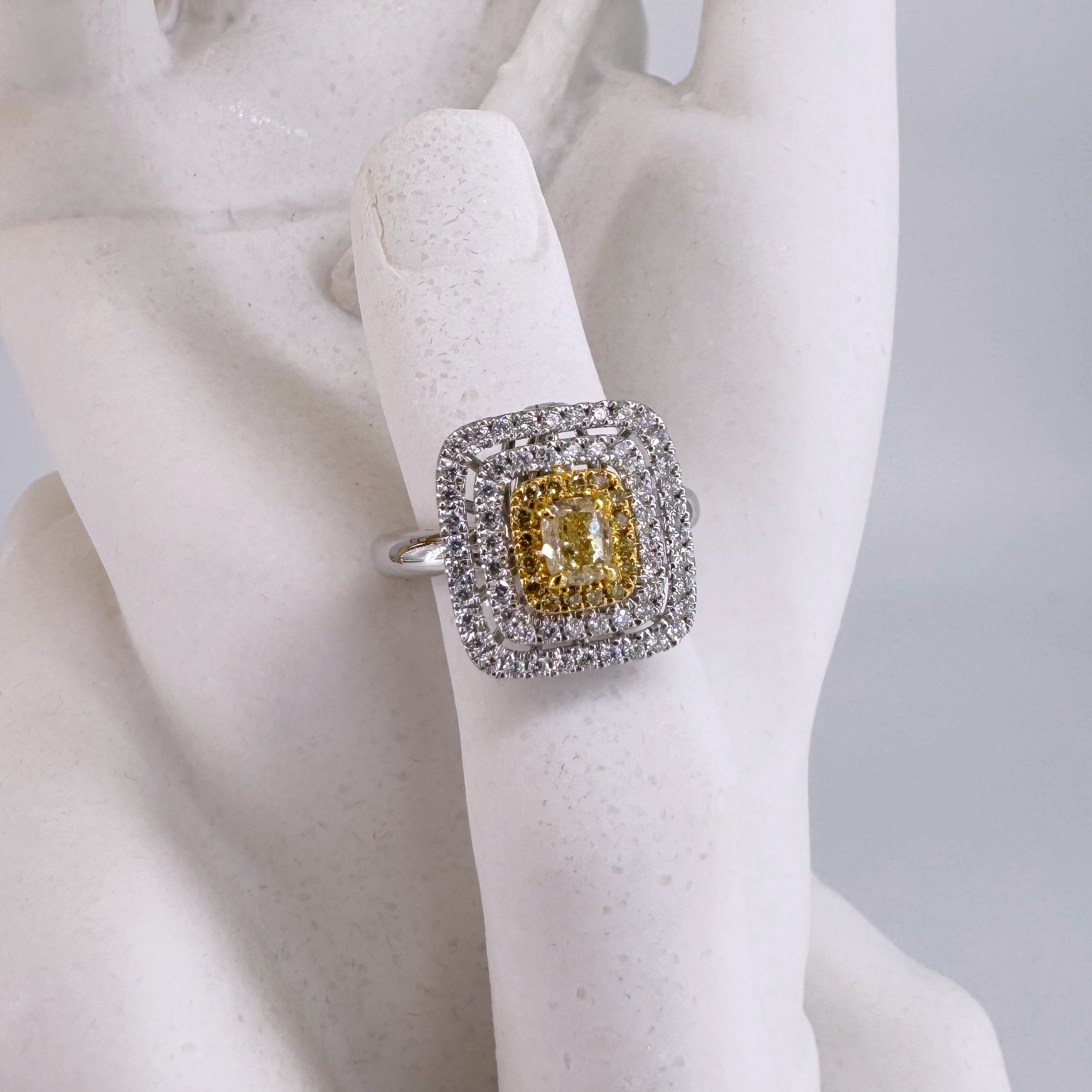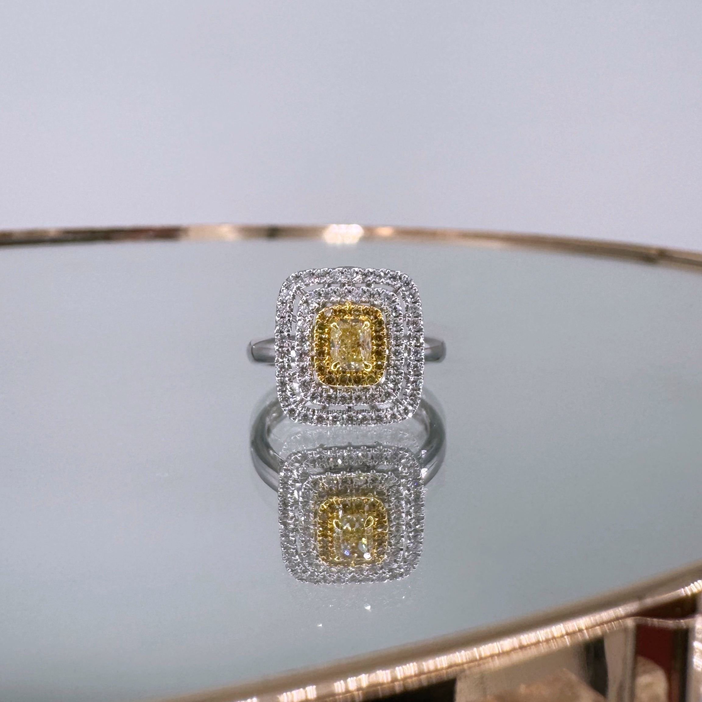 新款750白色黃金鑲天然黃色鑽石襯石戒指壹隻(包鑲連托)(一式兩戴)