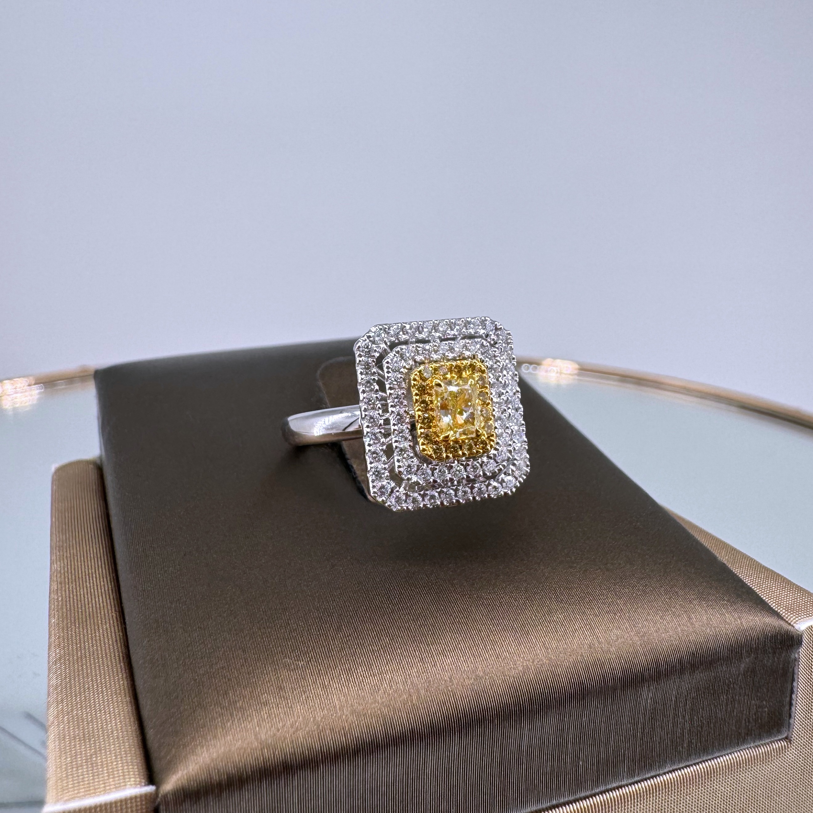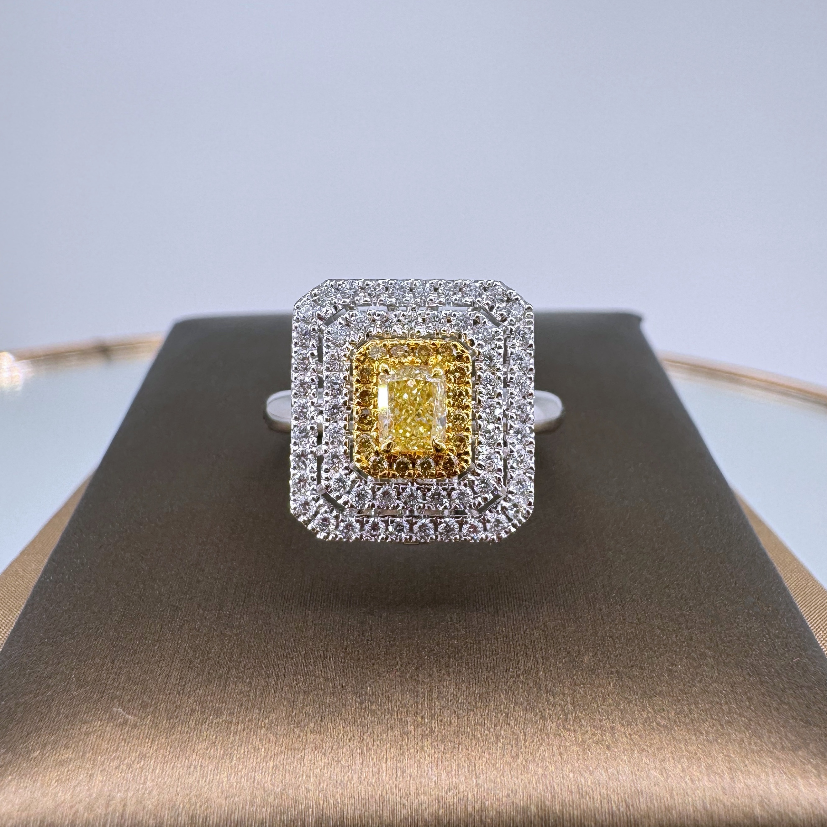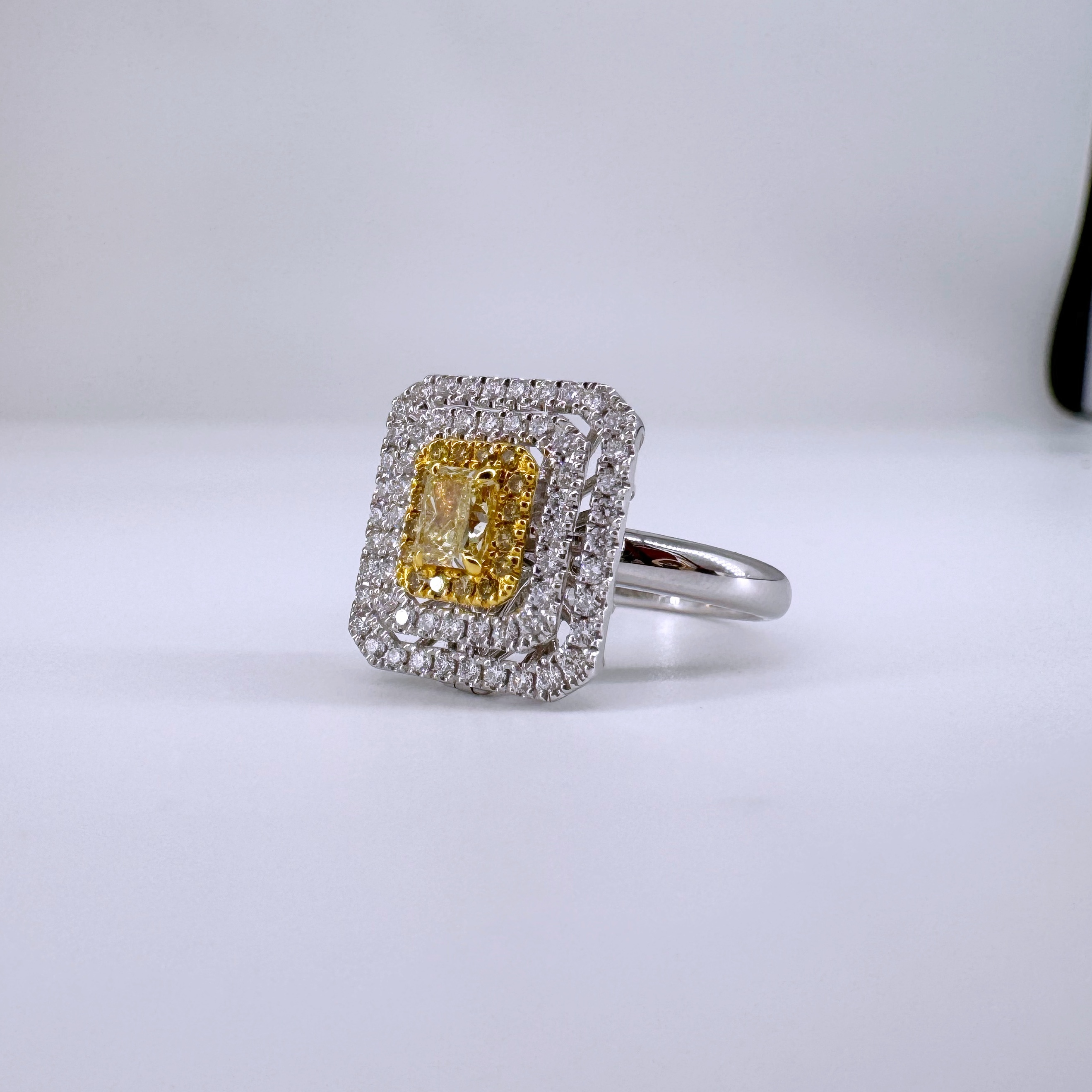 新款750白色黃金鑲天然黃色鑽石襯石戒指壹隻(包鑲連托)