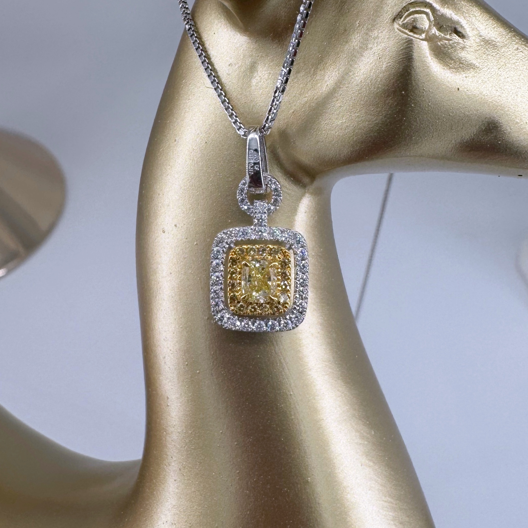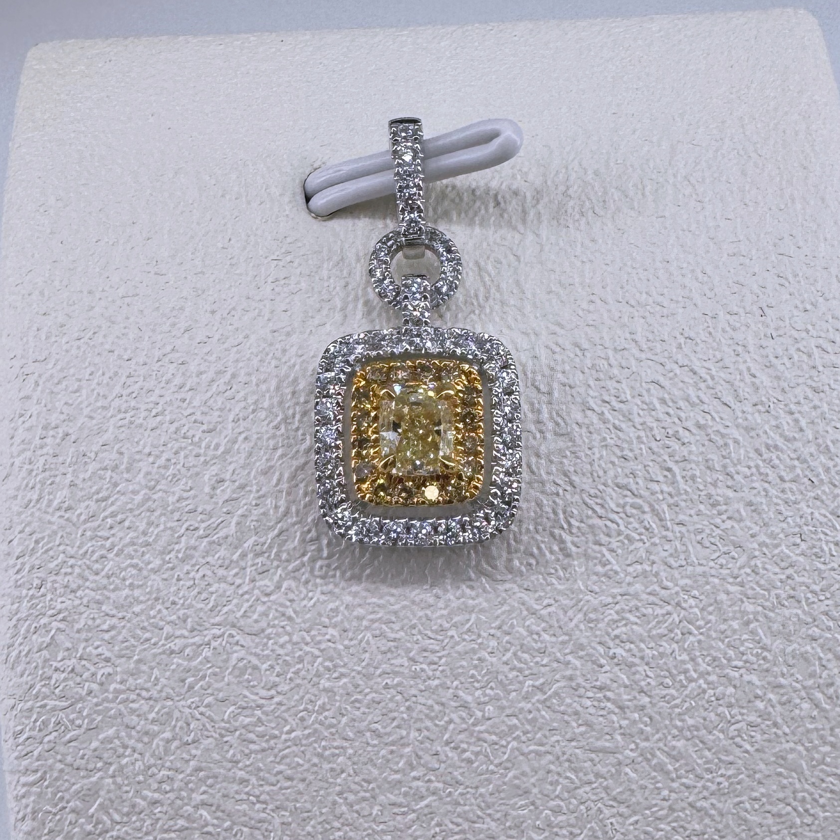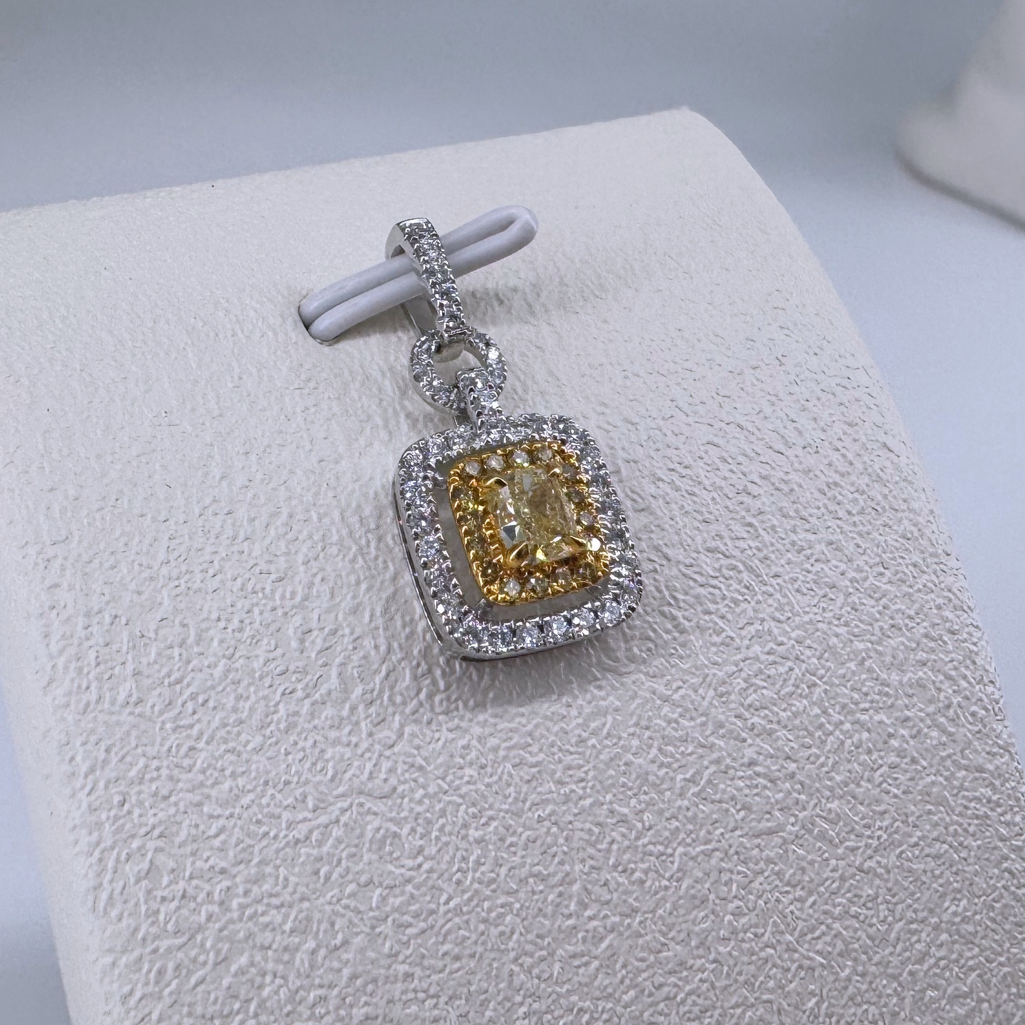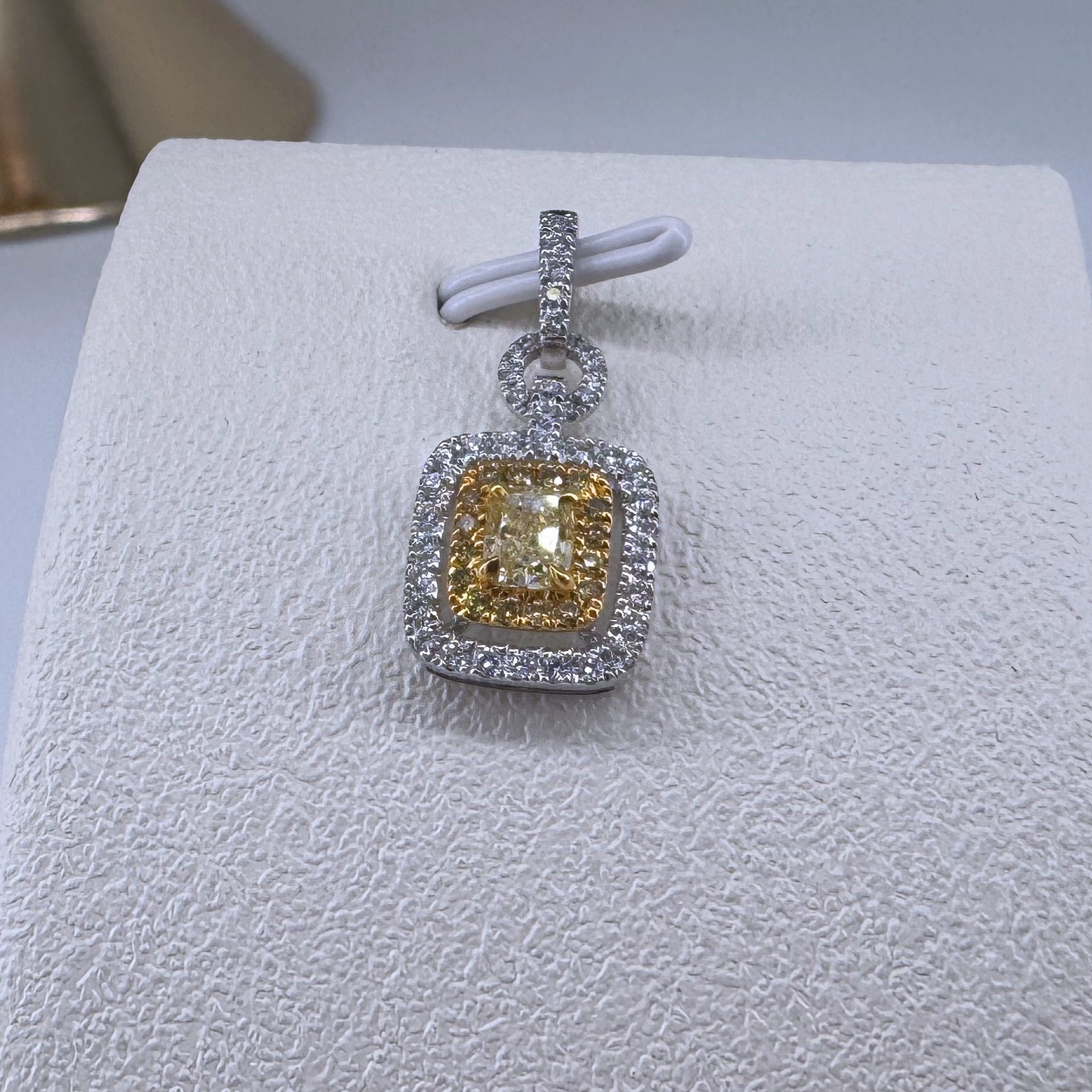 新款750白色黃金鑲天然黃色鑽石襯石吊墜壹個(包鑲連托)