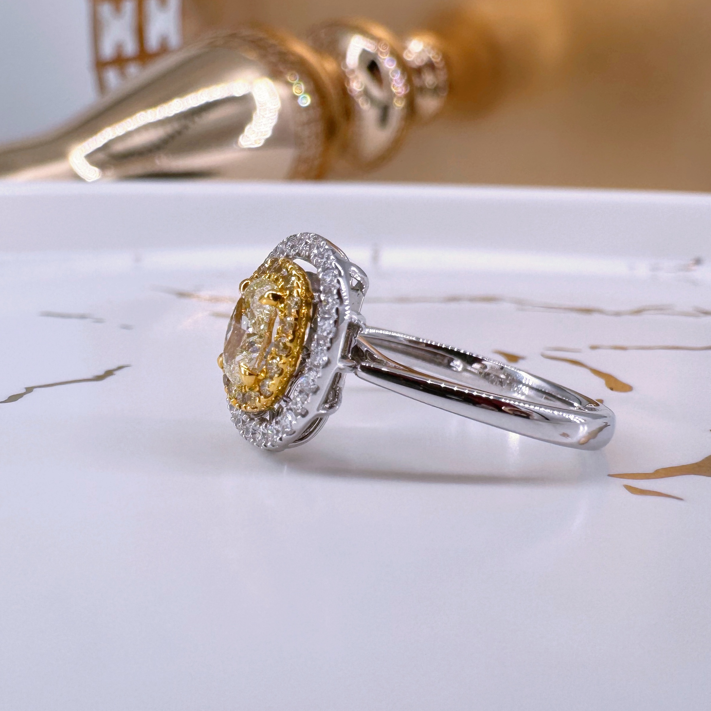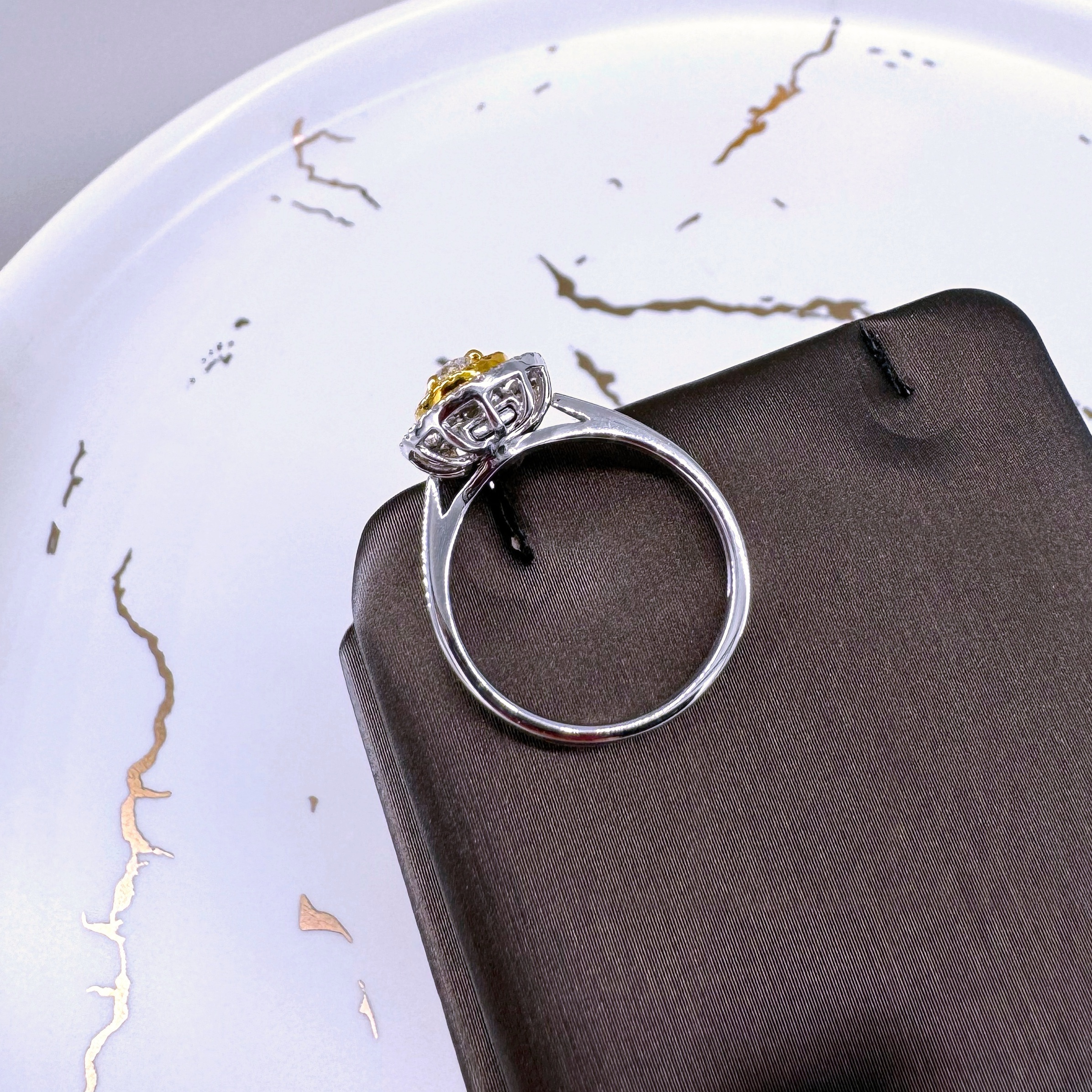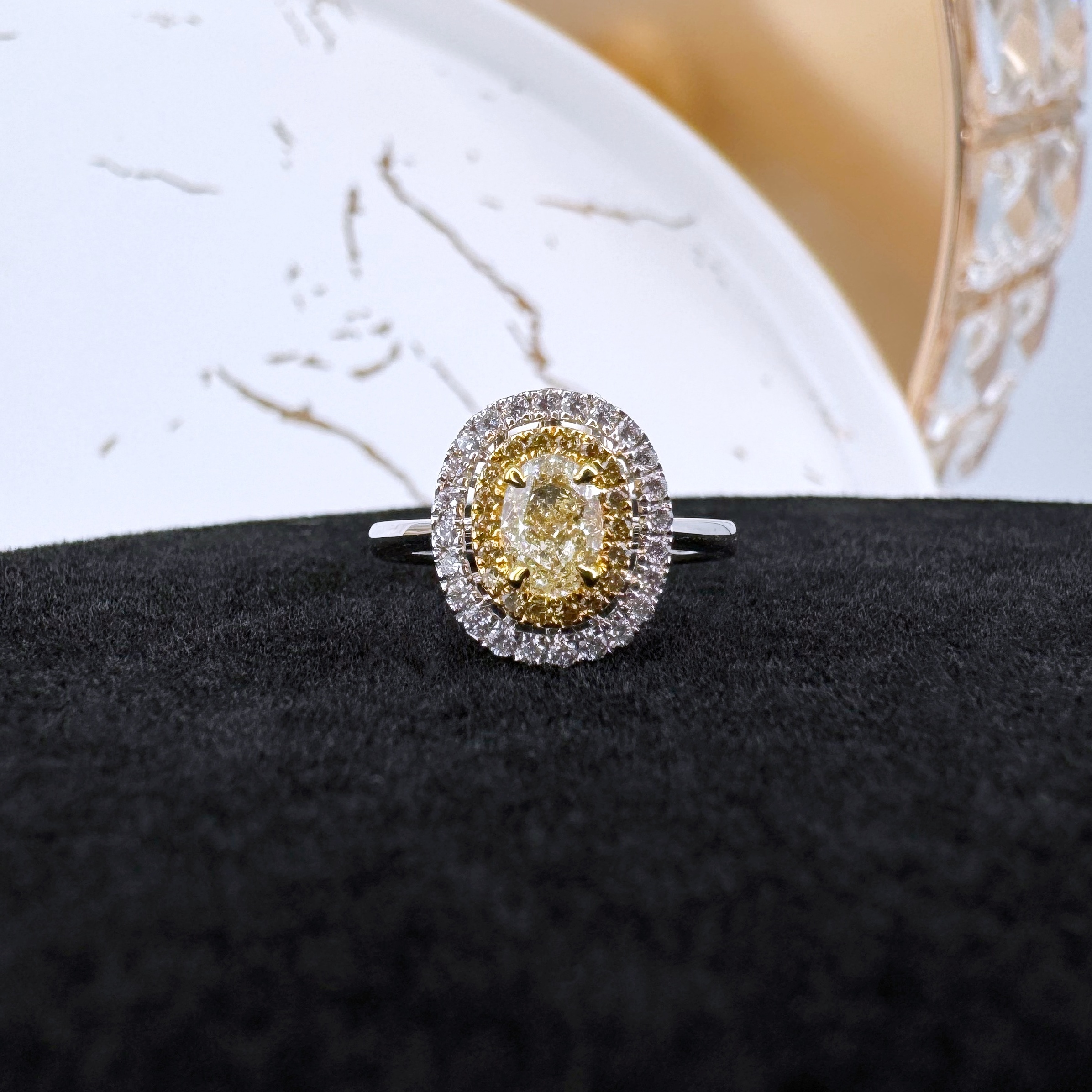 新款750白色黃金鑲天然黃色鑽石襯石戒指壹隻(包鑲連托)(一式兩戴)