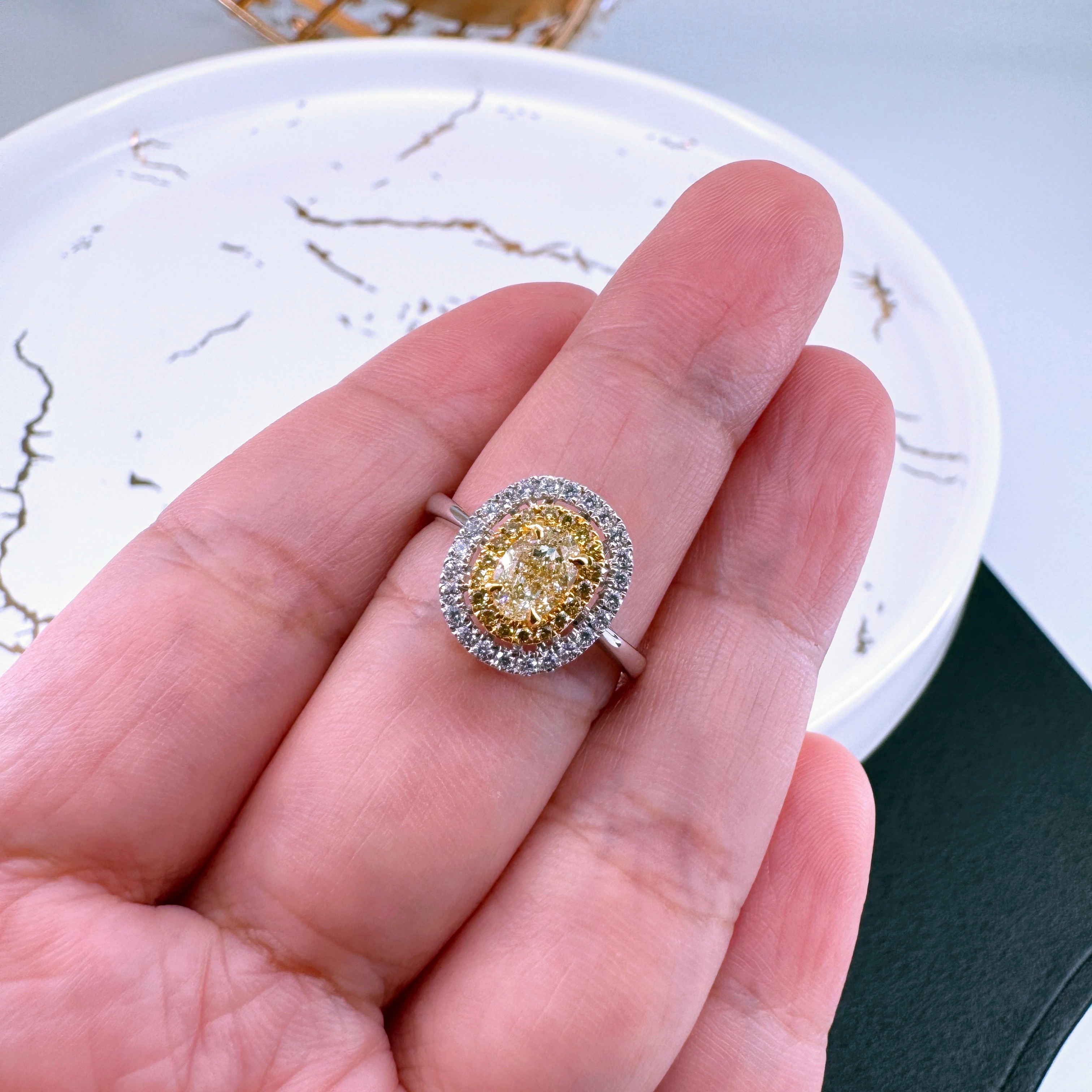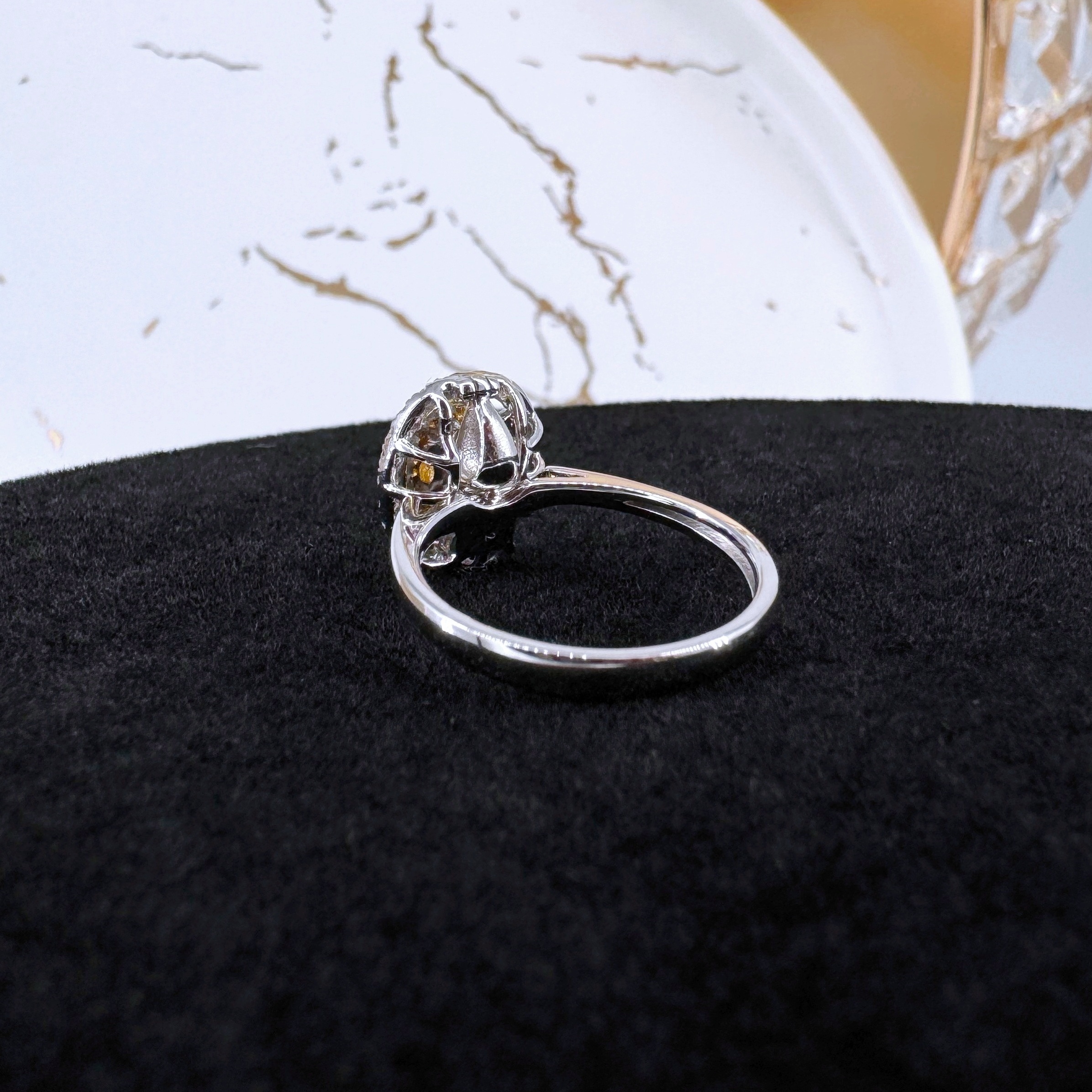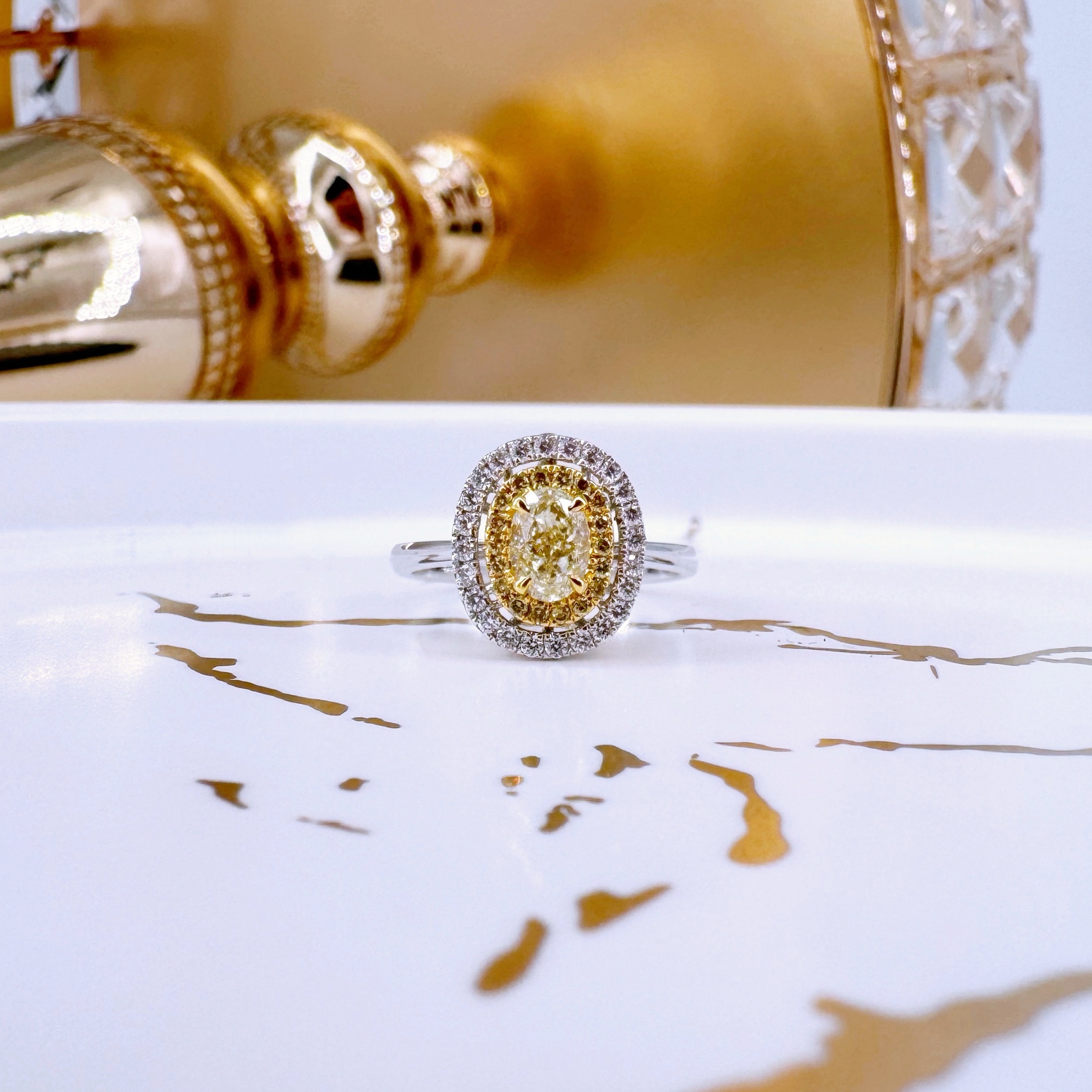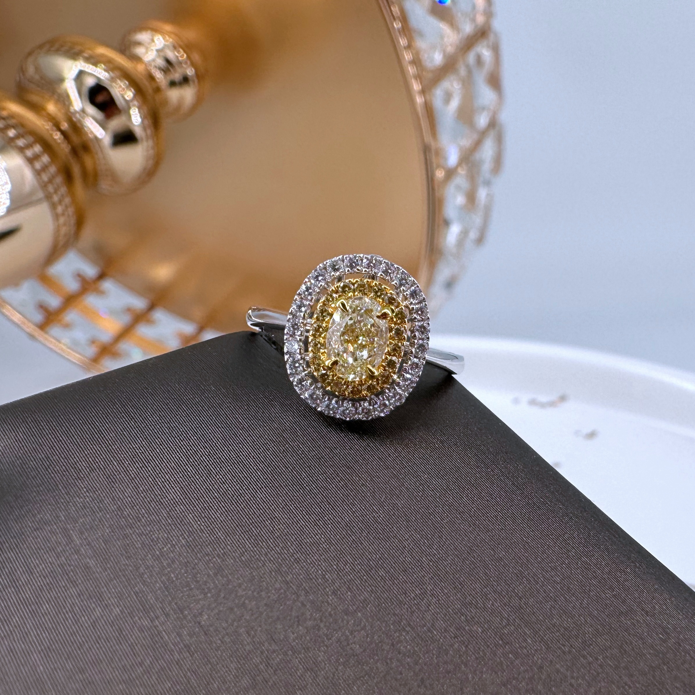 新款750白色黃金鑲天然黃色鑽石襯石戒指壹隻(包鑲連托)(一式兩戴)