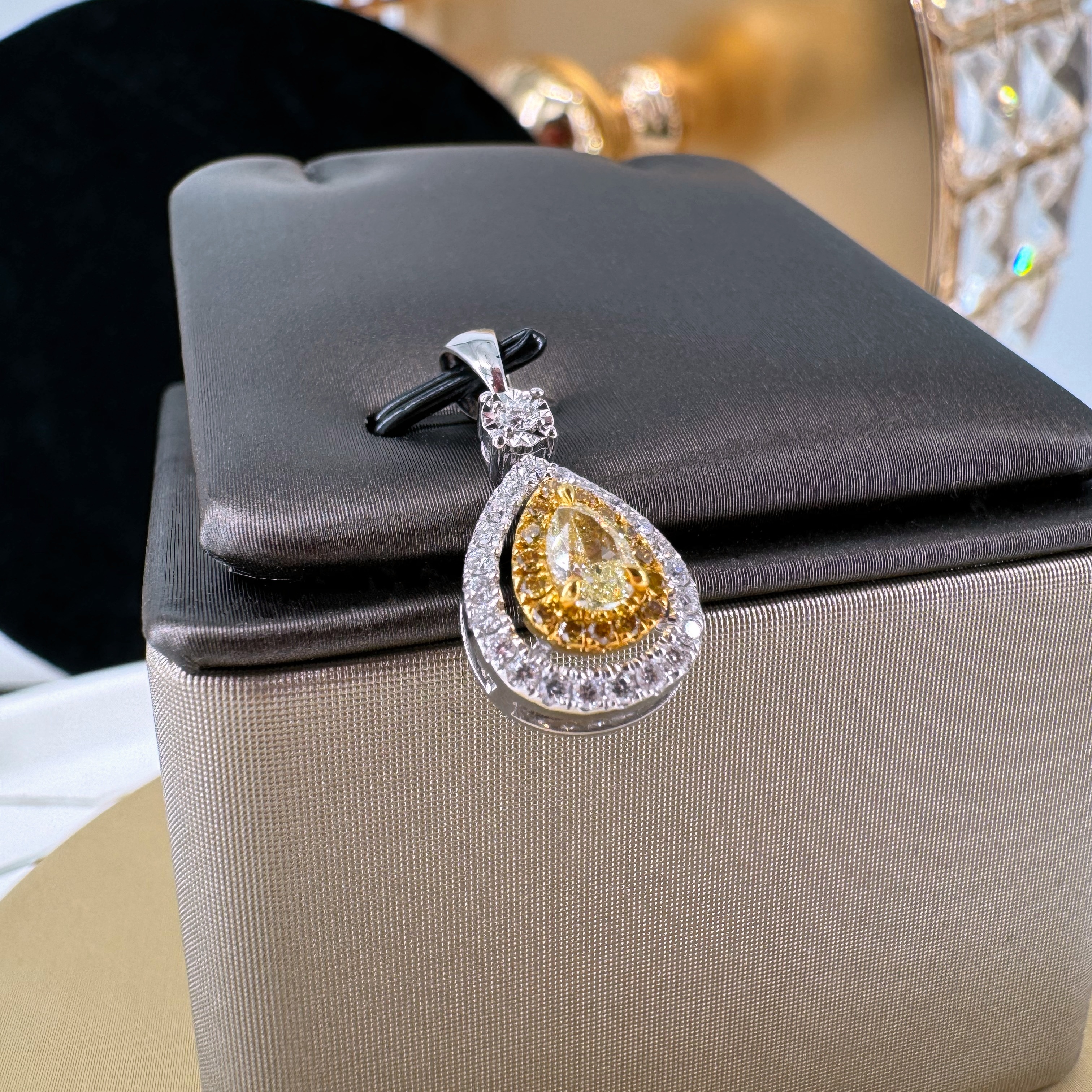 新款750白色黃金鑲天然黃色鑽石襯石吊墜壹個(包鑲連托)