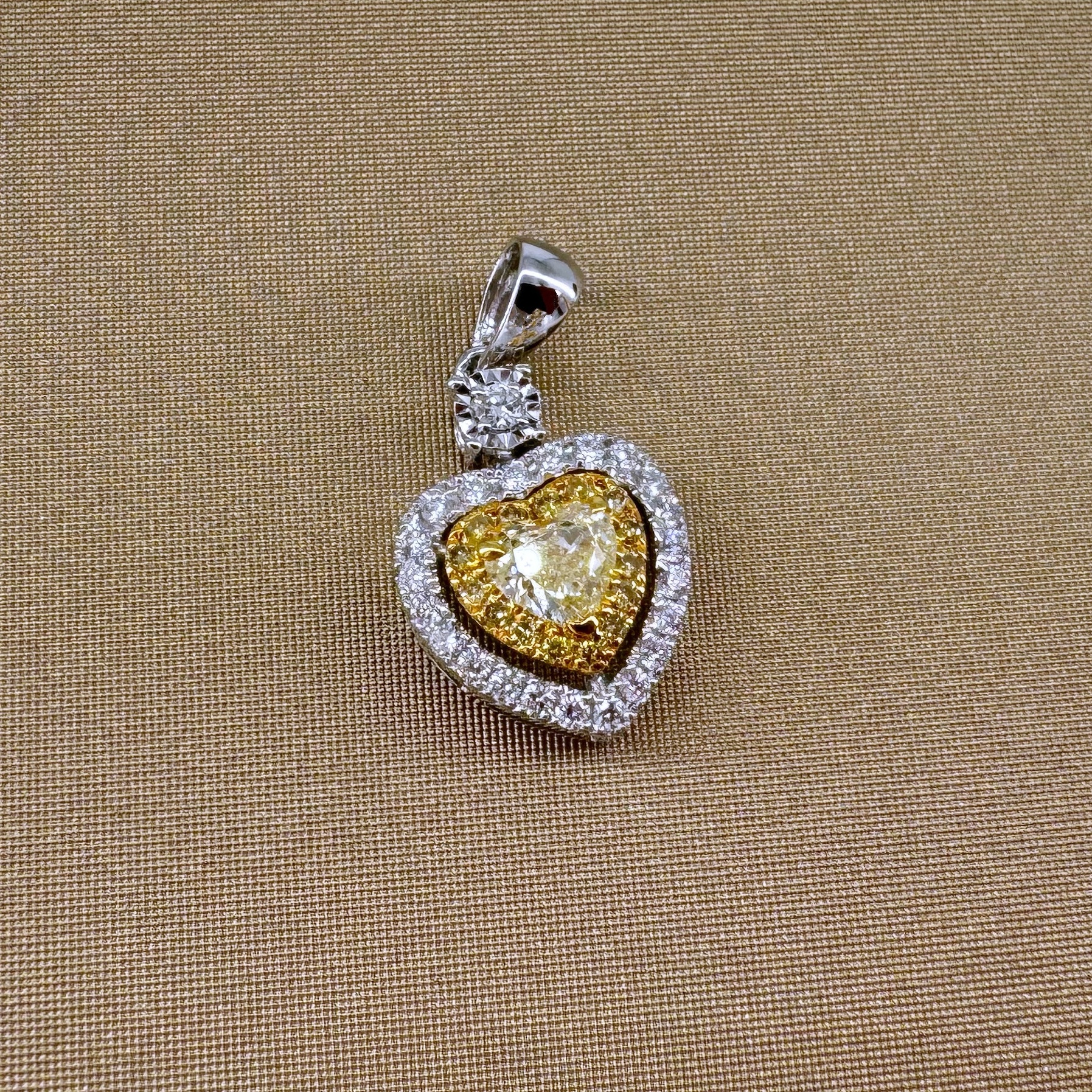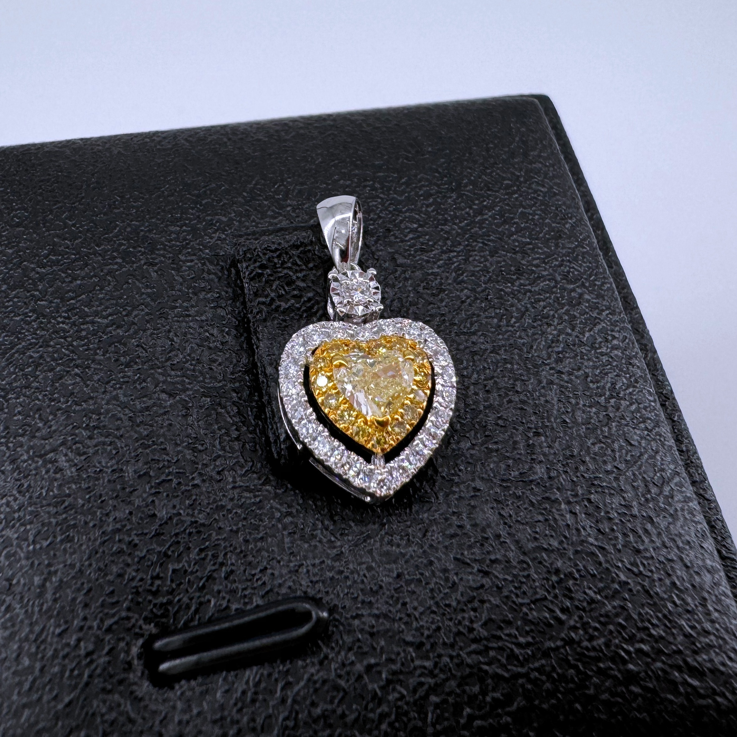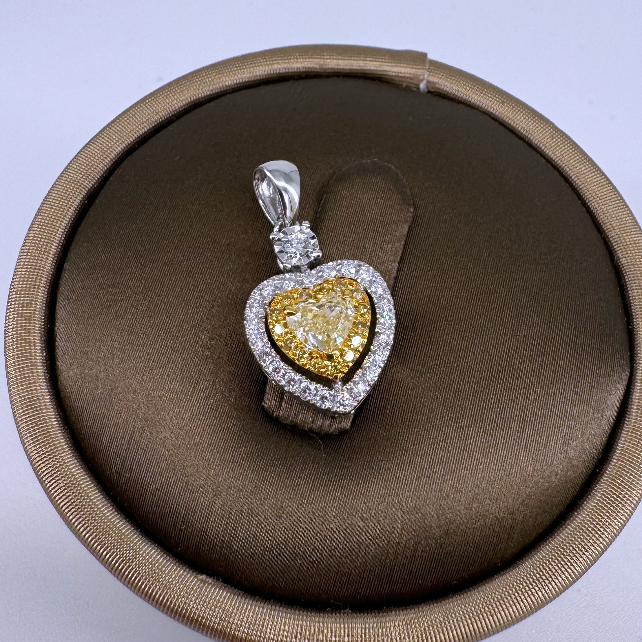 新款750白色黃金鑲天然黃色鑽石襯石吊墜壹個(包鑲連托)
