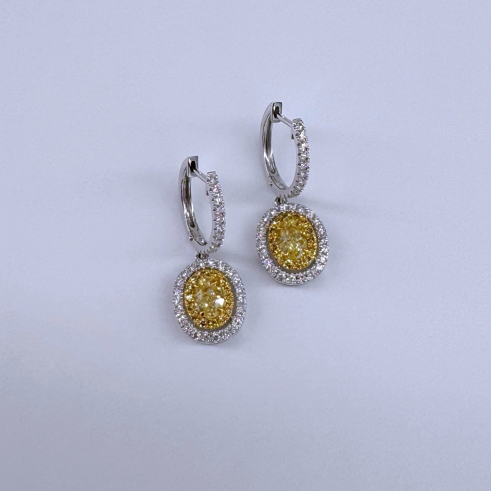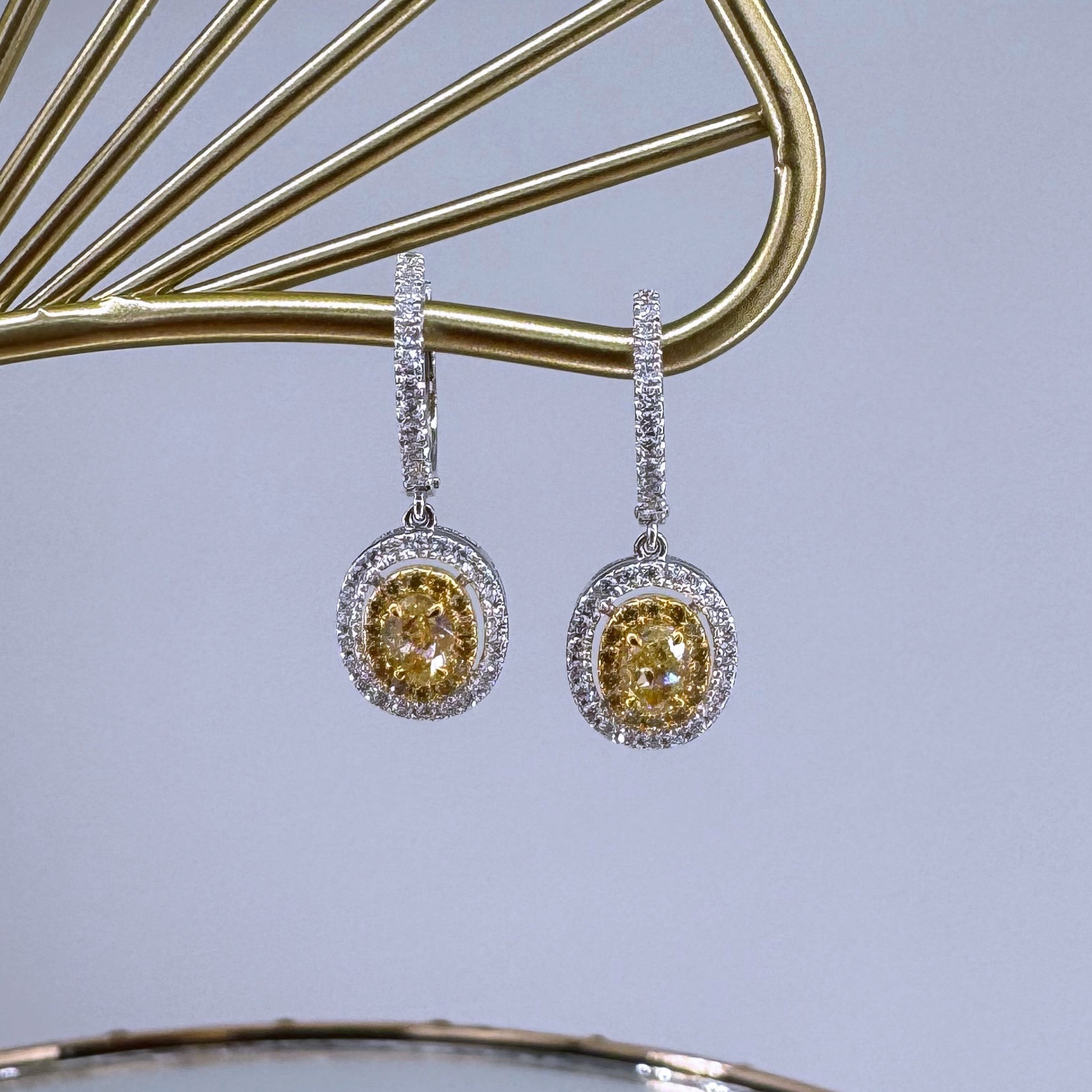 新款750白色黃金鑲天然黃色鑽石襯石耳環壹對(包鑲連托)