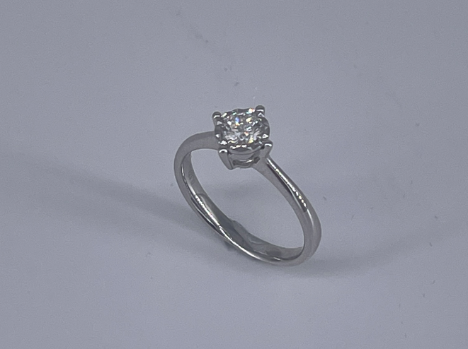新款750白色黃金鑲單鑽石四爪戒指壹隻(包鑲連托)